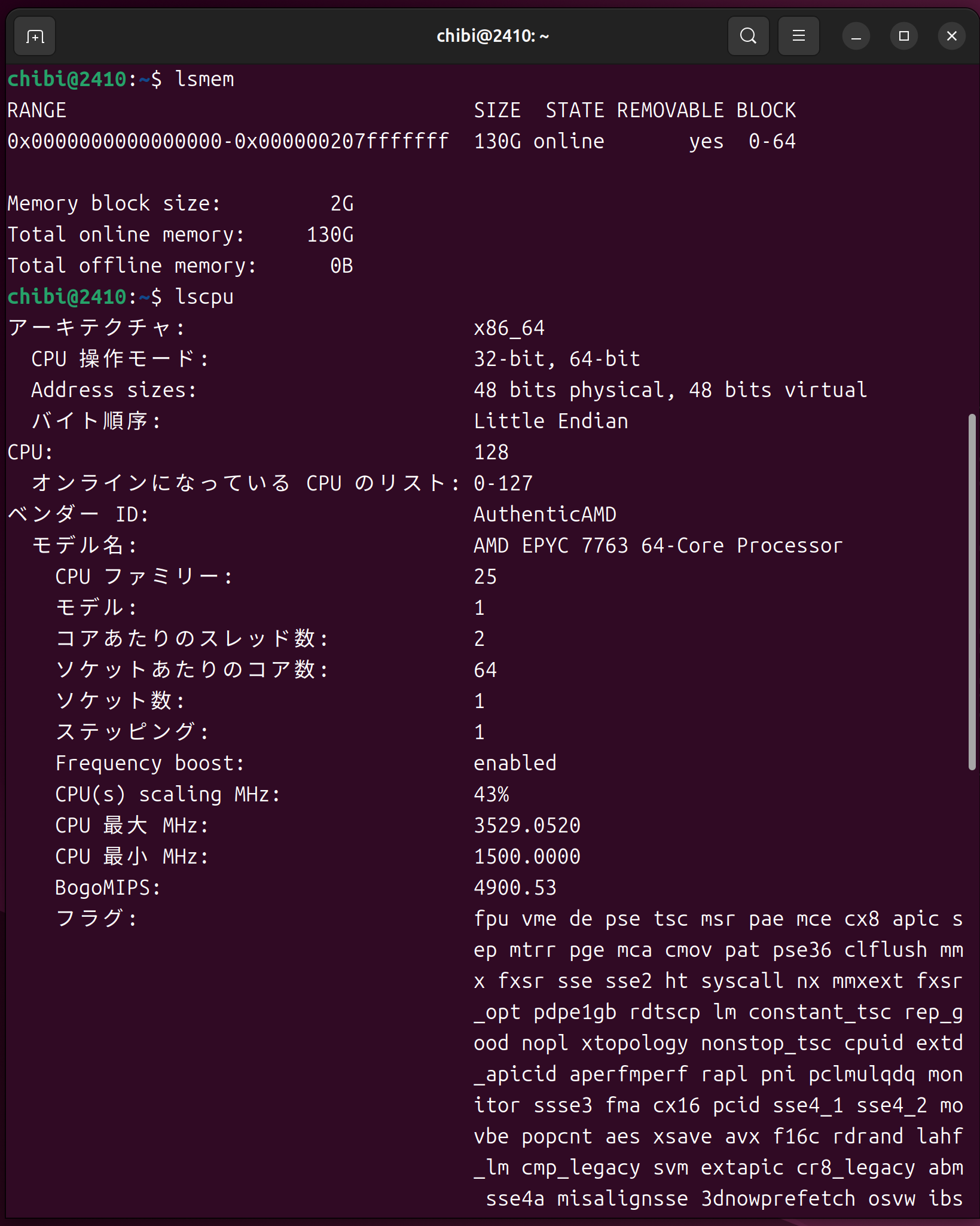 - 第5世代 AMD EPYC 9655 96-Core Processor 192Threads 384GB TITAN RTX Fanxiang S500Pro 256GBで構成された AlmaLinux Kitten release 10 へ CUDA-toolkit 12.9.0をInstall してnvidia-smi nvcc -V cat /etc/redhat-release sensors nvme list nvme-smart-log /dev/nvme0n1 lsmem lscpuを設定してみた