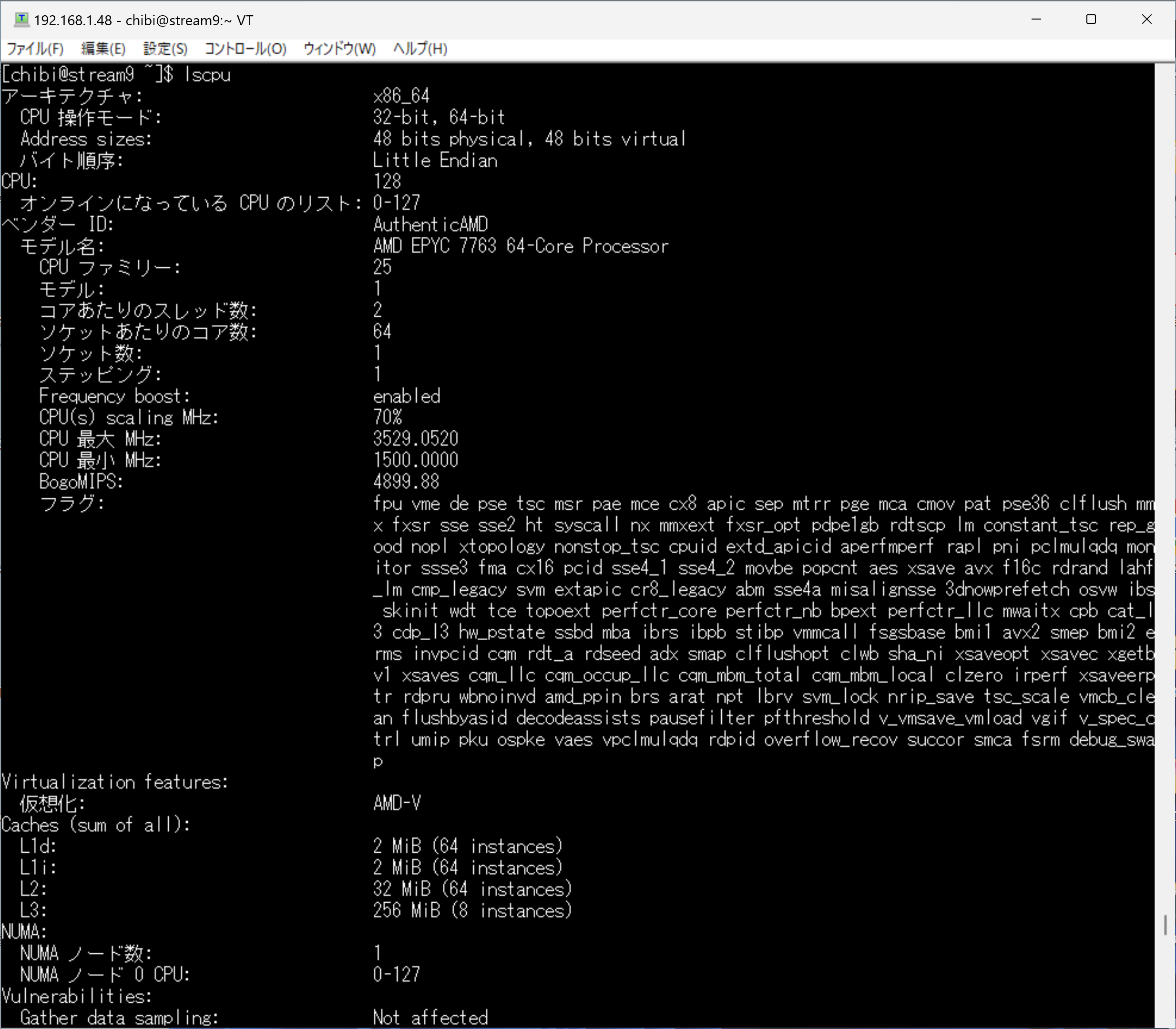 lscpu AMD EPYC 7763 64-Core Processor 128Threads