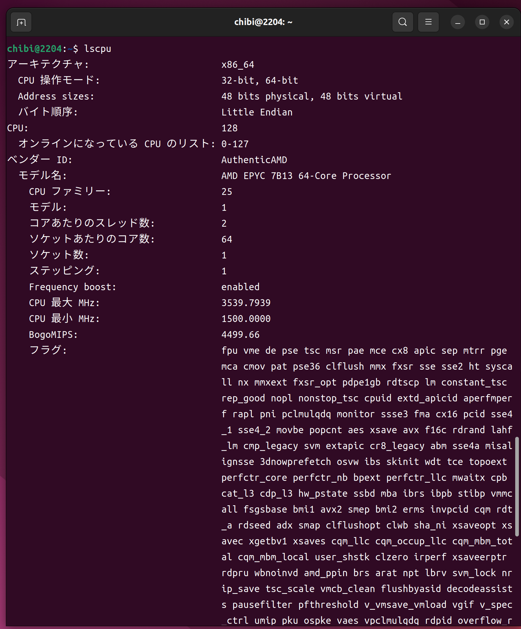 lscpu AMD EPYC 7B13 64-Core Processor 128Threads