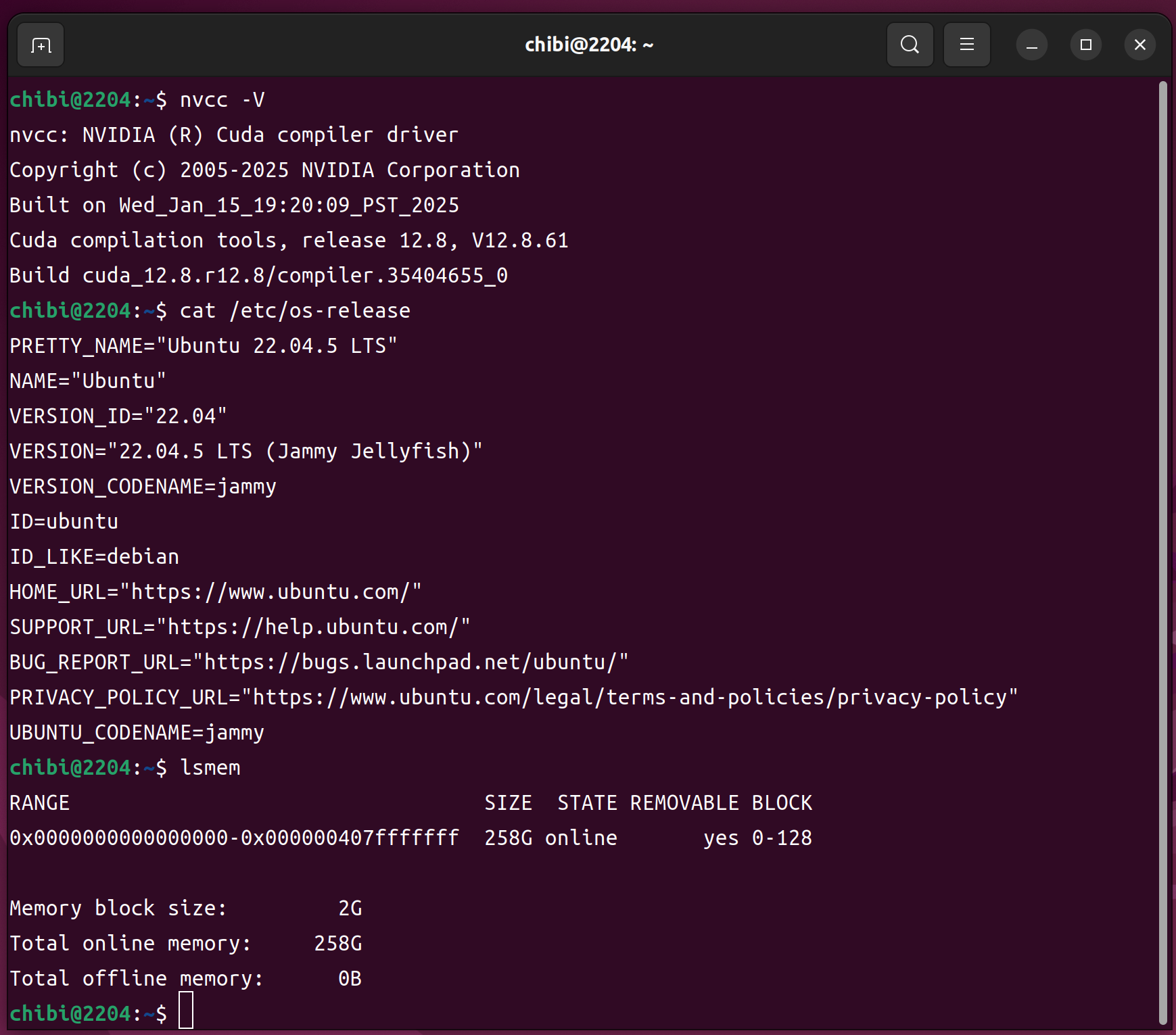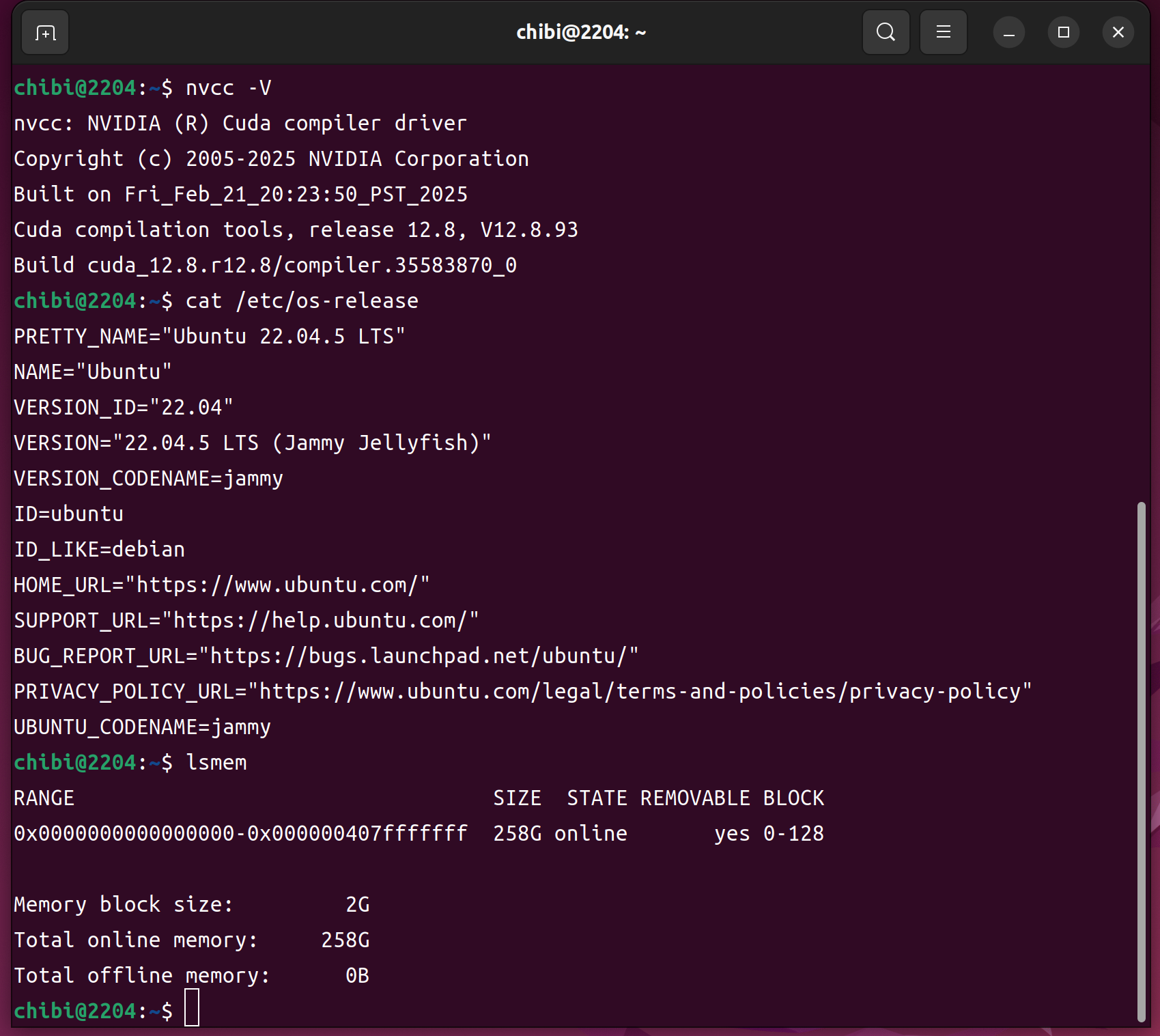 nvcc -V cat /etc/os-release lsmem 256GB