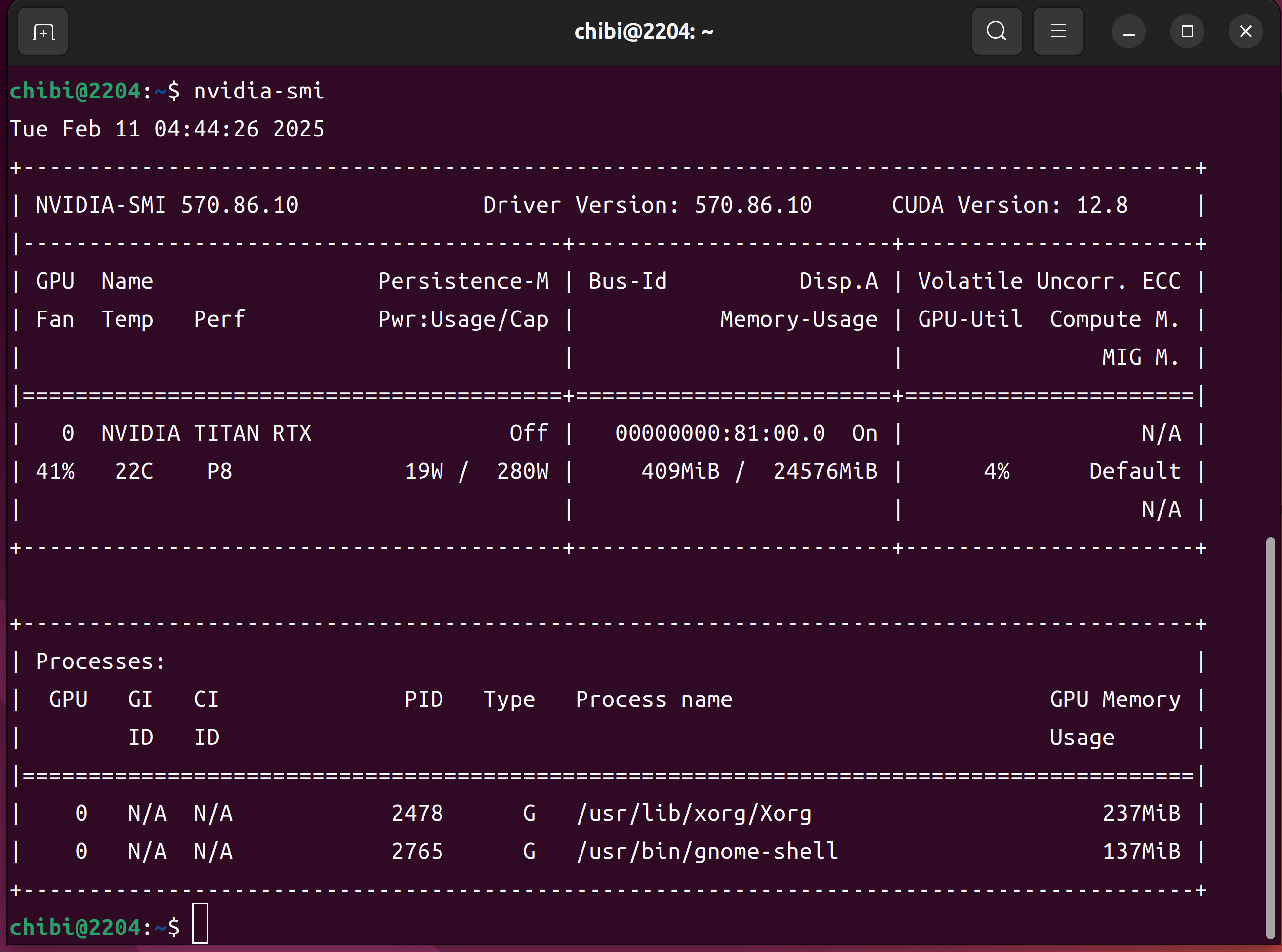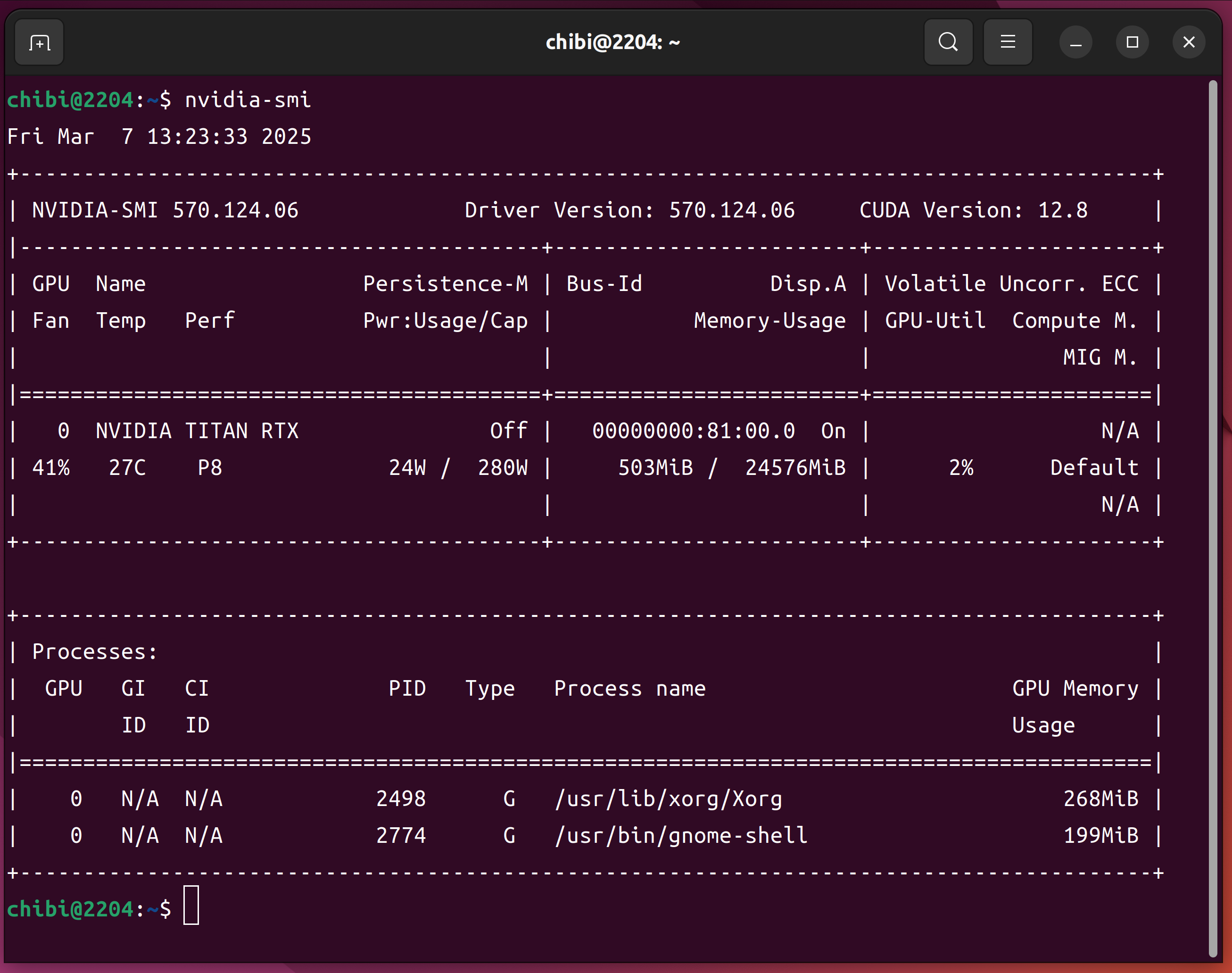 - 第3世代 AMD EPYC 7B13 64-Core Processor 128Threads 256GB TITAN RTX SPCC Solid State Diskで構成された Ubuntu 22.04.5 LTS へ CUDA.12.8.0をInstall して nvidia-smi nvcc -V cat /etc/os-release lsmem sensors nvme list nvme smart-log /dev/nmve0n1 lscpuを設定した
