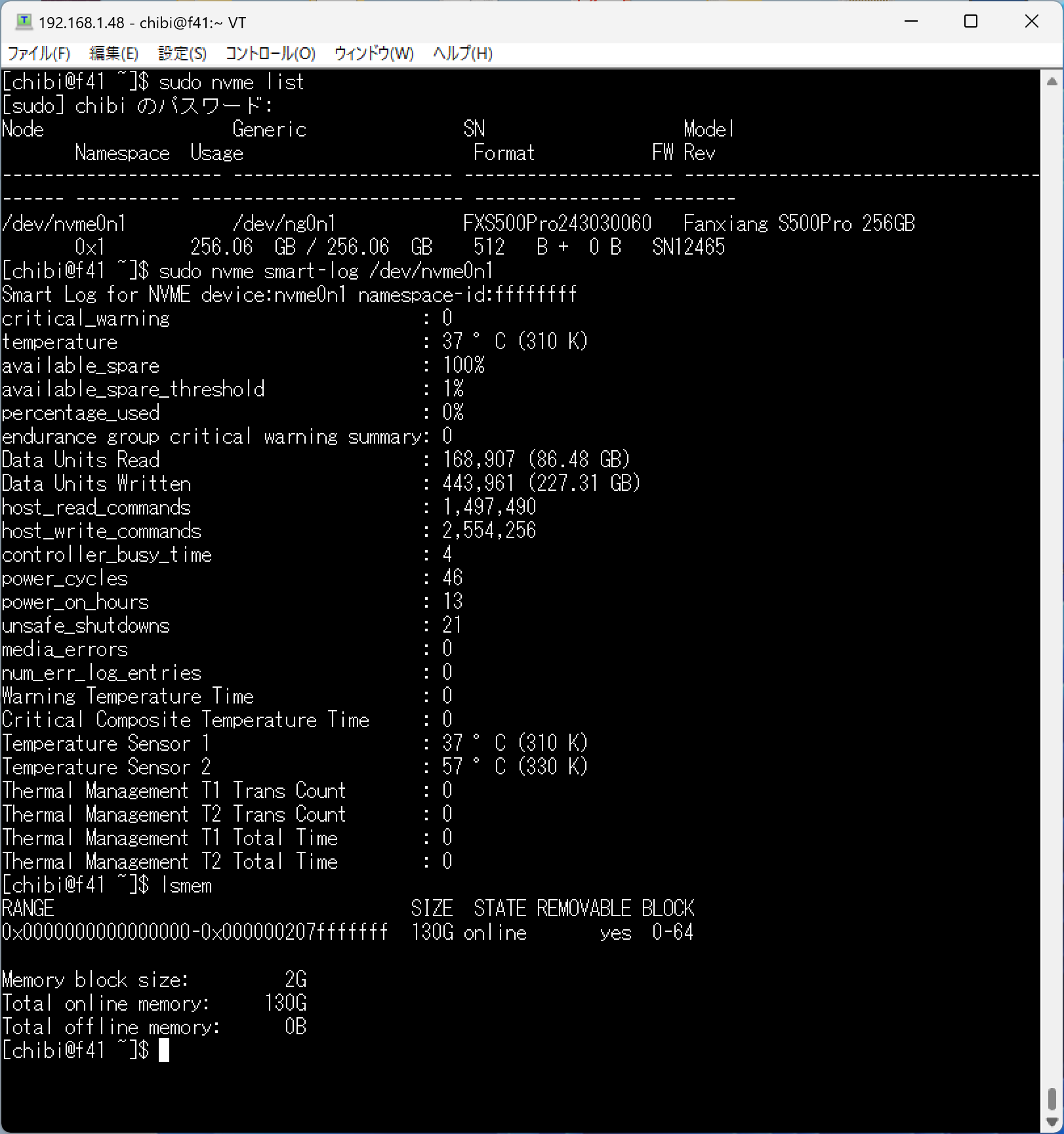 nvme list nvme smart-log /dev/nvme0n1 lsmem