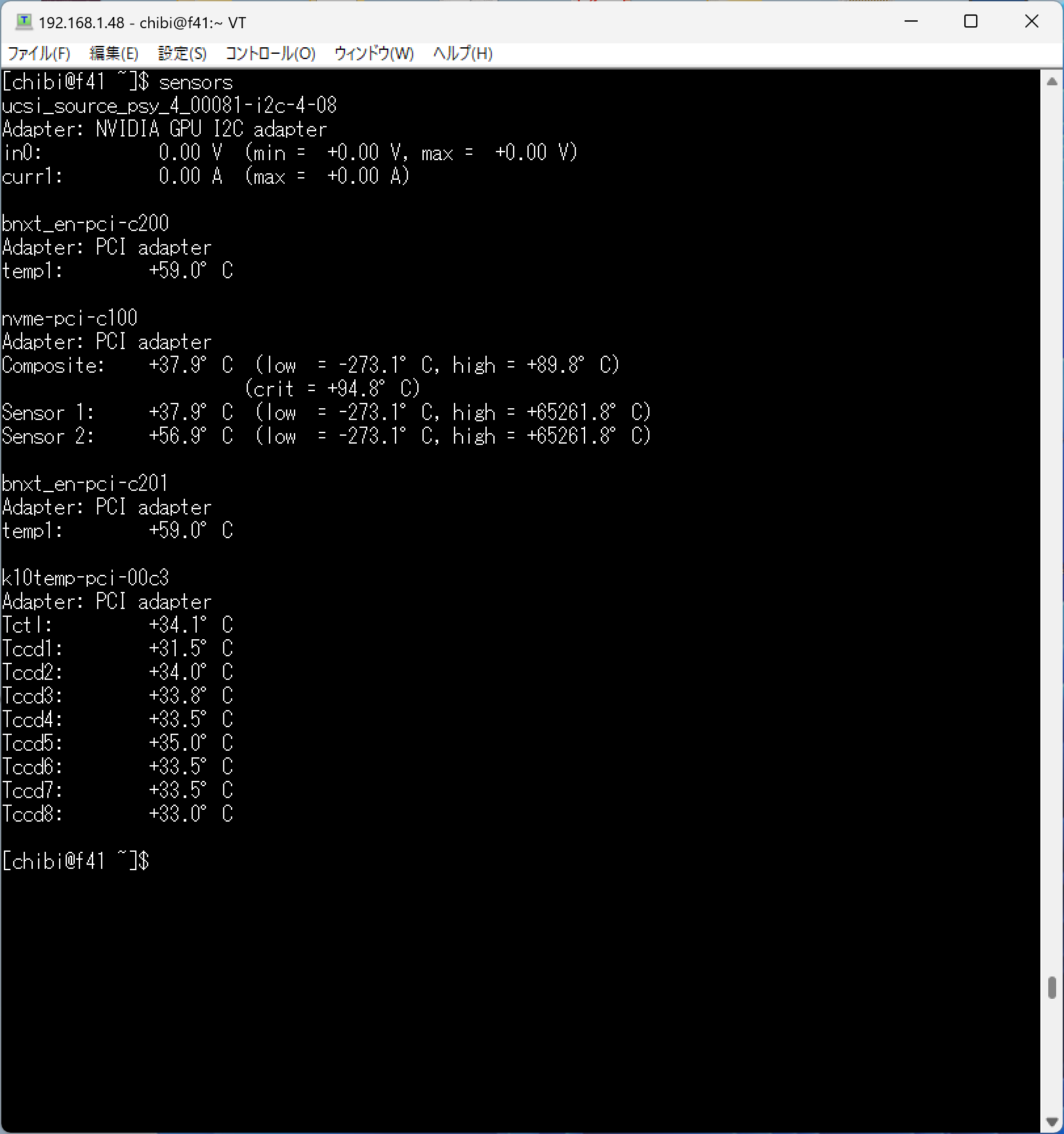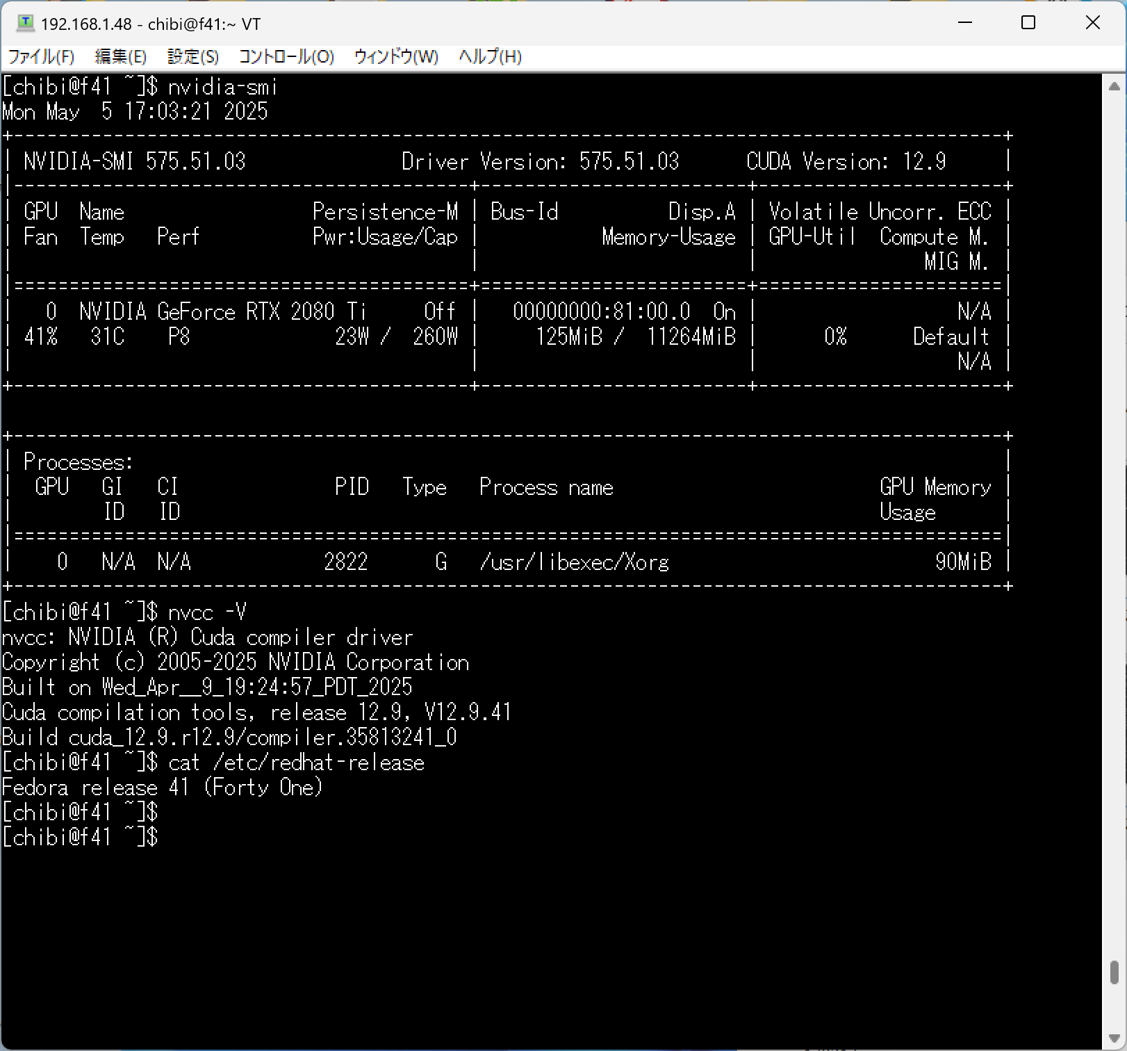 - 第3世代 AMD EPYC 7763 64-Core Processor 128Threads 128GB RTX2080Ti Fanxiang S880E 500GB で構成されたFedora release 41 へ CUDA.12.9.0.をInstall して nvidia-smi nvcc -V cat /etc/redhat-release sensors nvme list nvme smart-log /dev/nvme0n1 lsmem lscpuを設定した