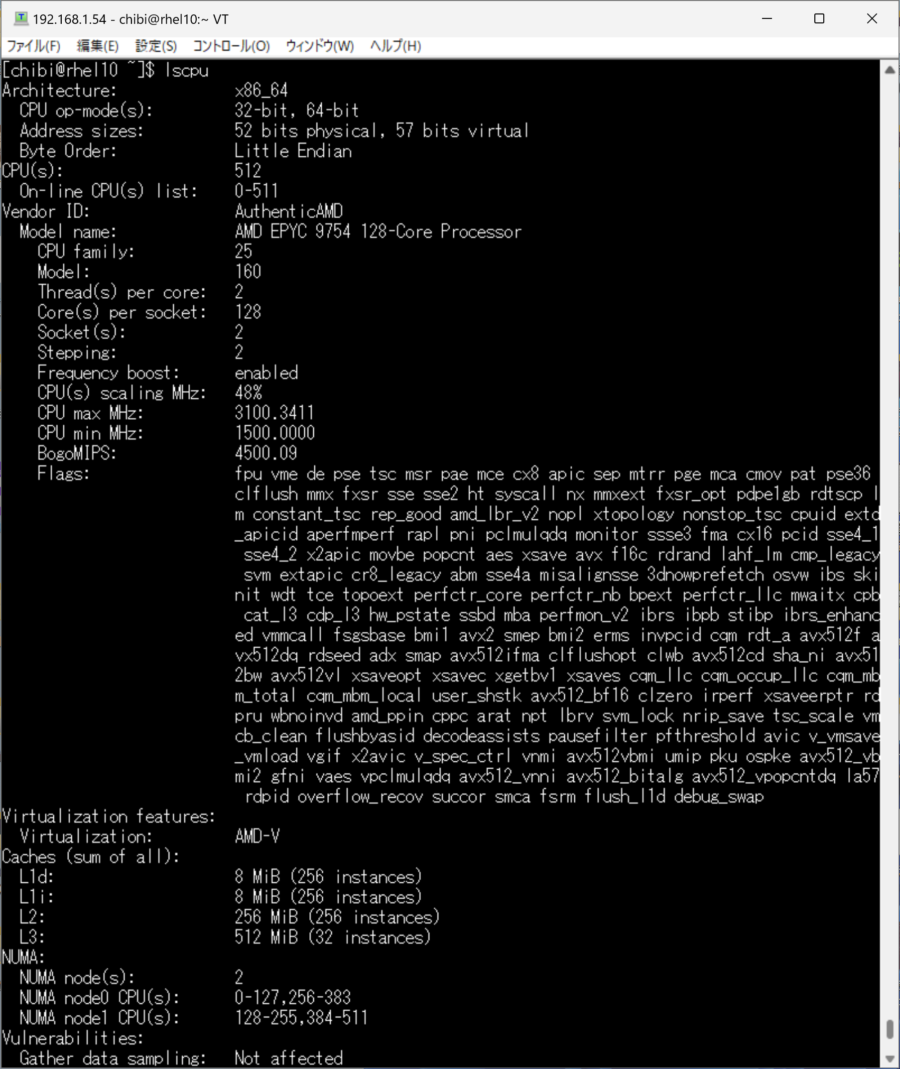 lscpu AMD EPYC 9754 x2CPU 256-Core Processor 512Threads