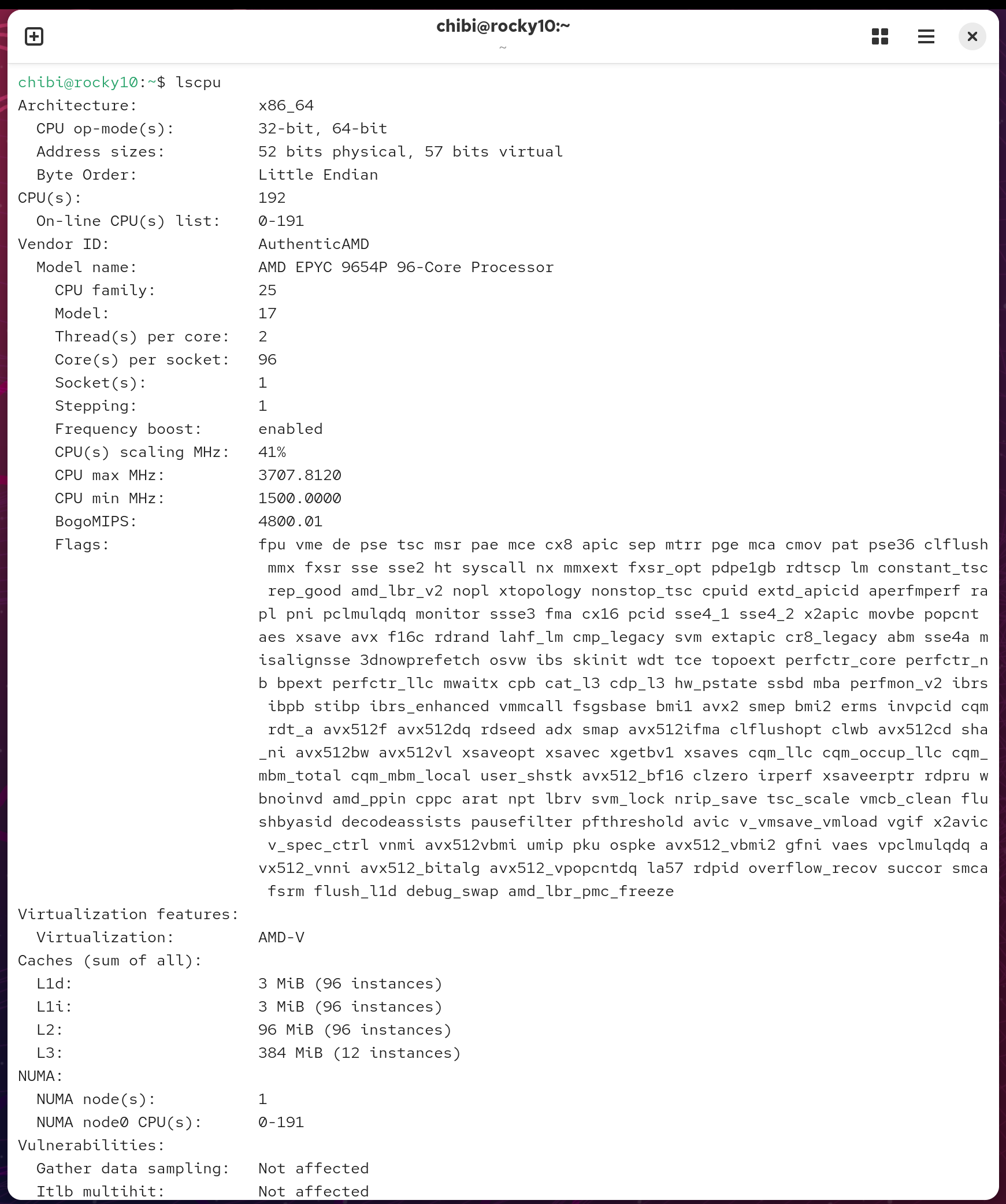 lscpu AMD EPYC 9654P 96-Core Processor 192Threads