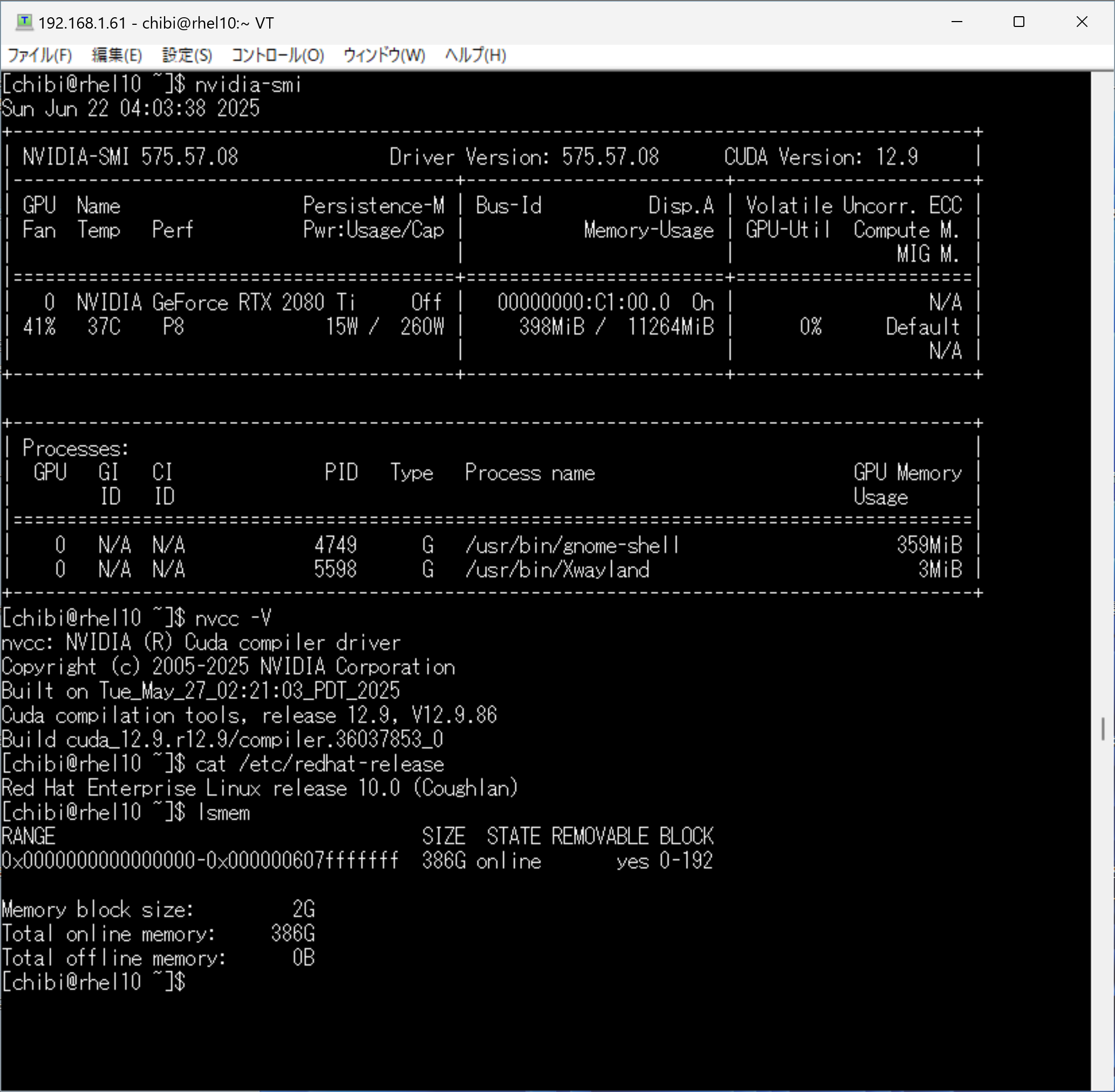 Rocky Linux release 9.6 Kernelが5.14.0-570.21.1.el9_6.x86_64にUpdateされました。