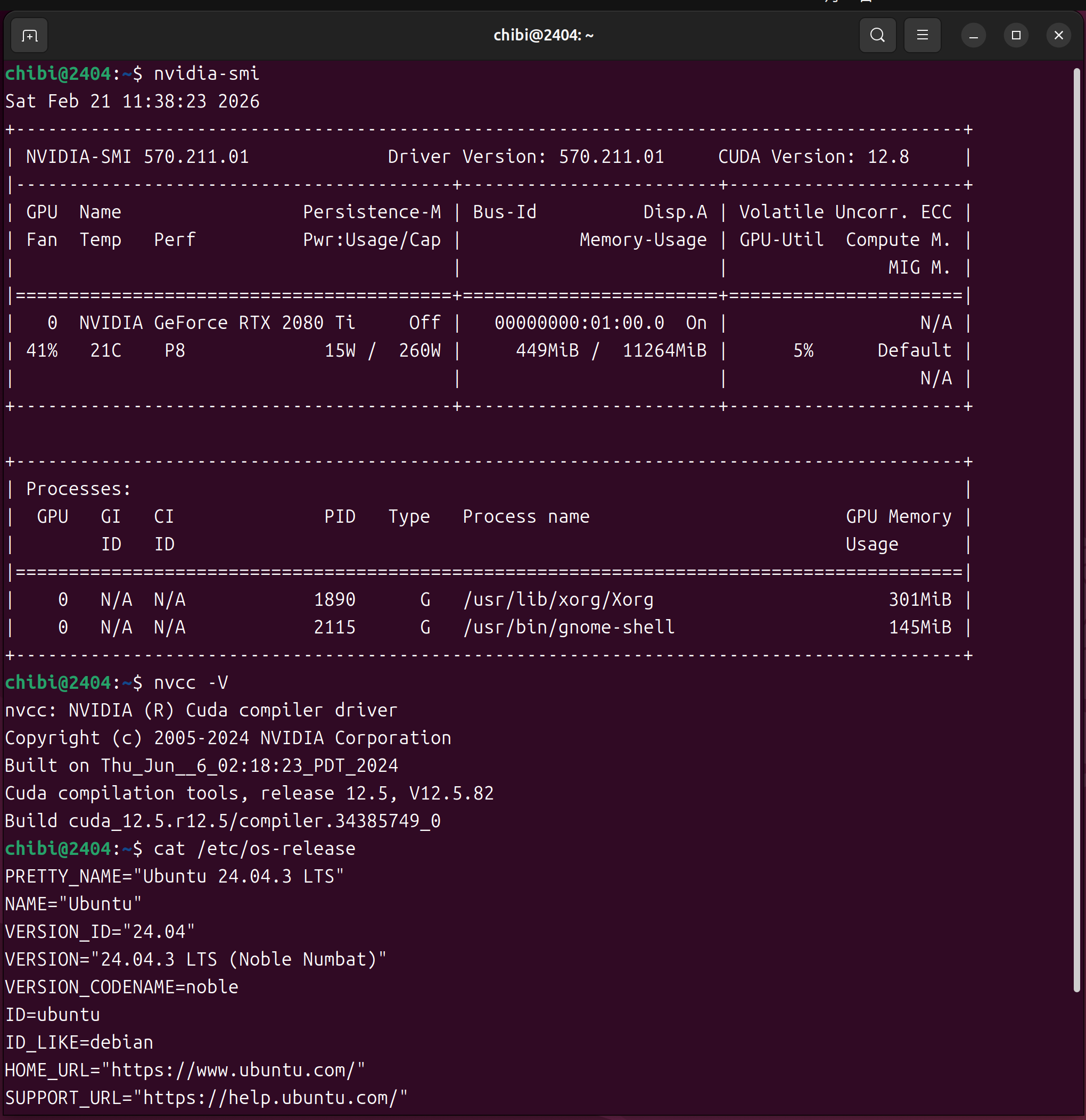 - 第3世代 AMD EPYC 7763 64-Core Processor 128Threads 128GB TITAN RTX SPCC Solid State Diskで構成された Ubuntu 22.04.5 LTS へCUDA-Toolkit.12.8.0をInstall して nvidia-smi nvcc -V cat /etc/os-release hddtemp sensors lemem lscpu を設定してみた
