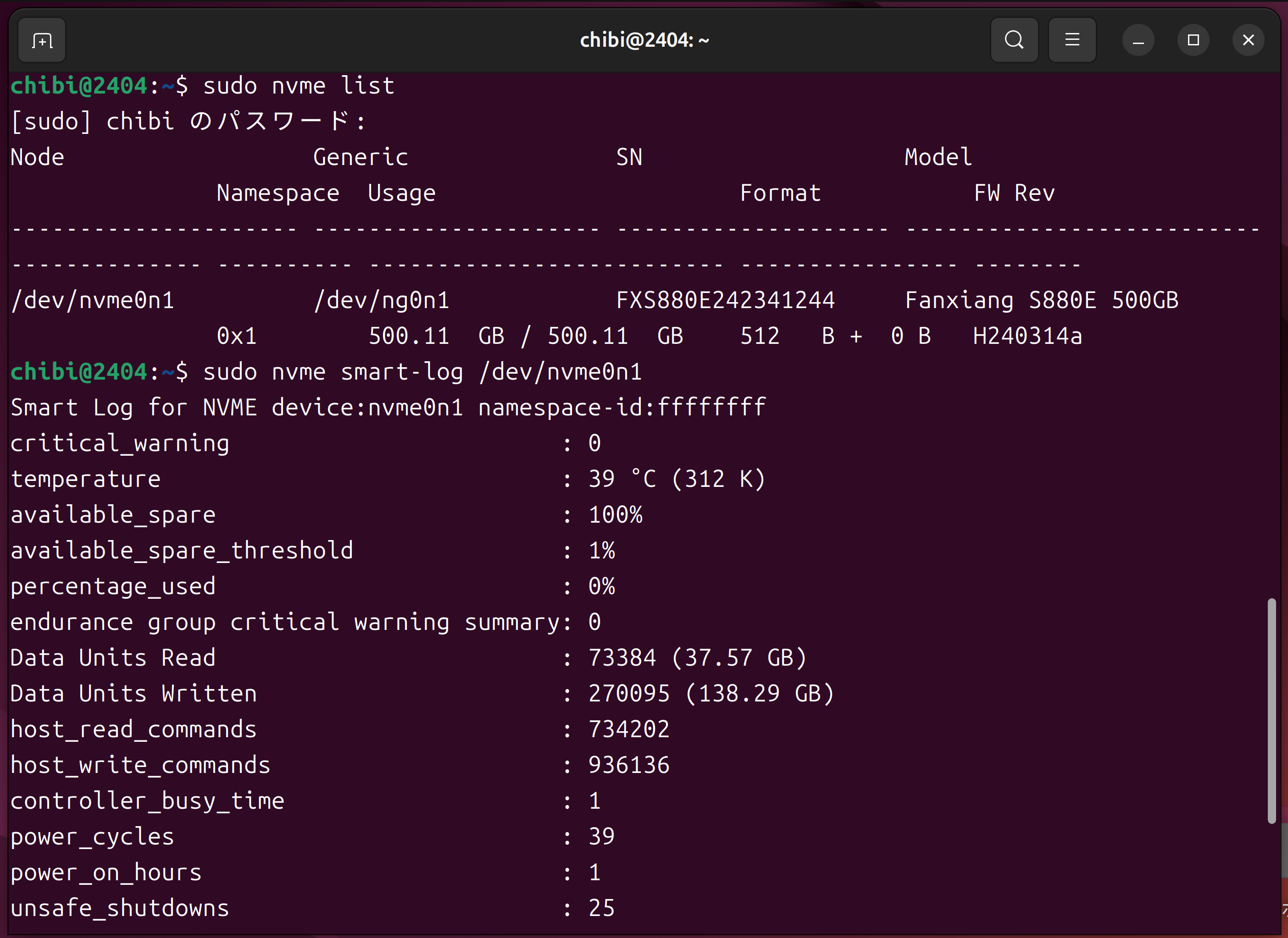 sudo nvme list sudo nvme smart-log /dev/nvme0n1