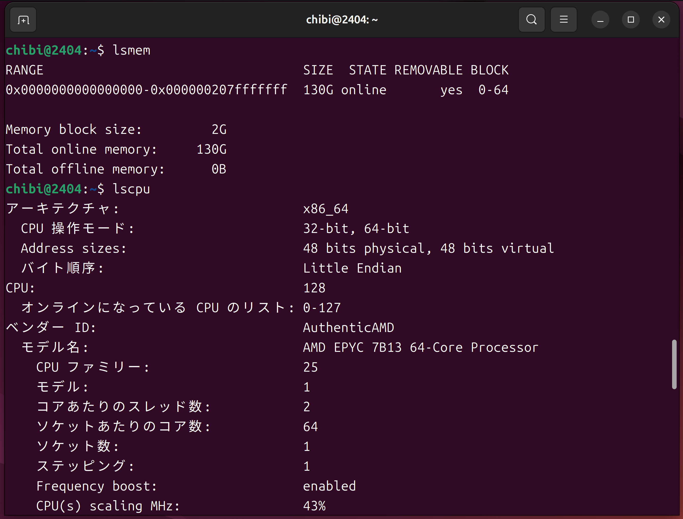 lsmem lscpu AMD EPYC 7B13 64-Core Processor 128Threads