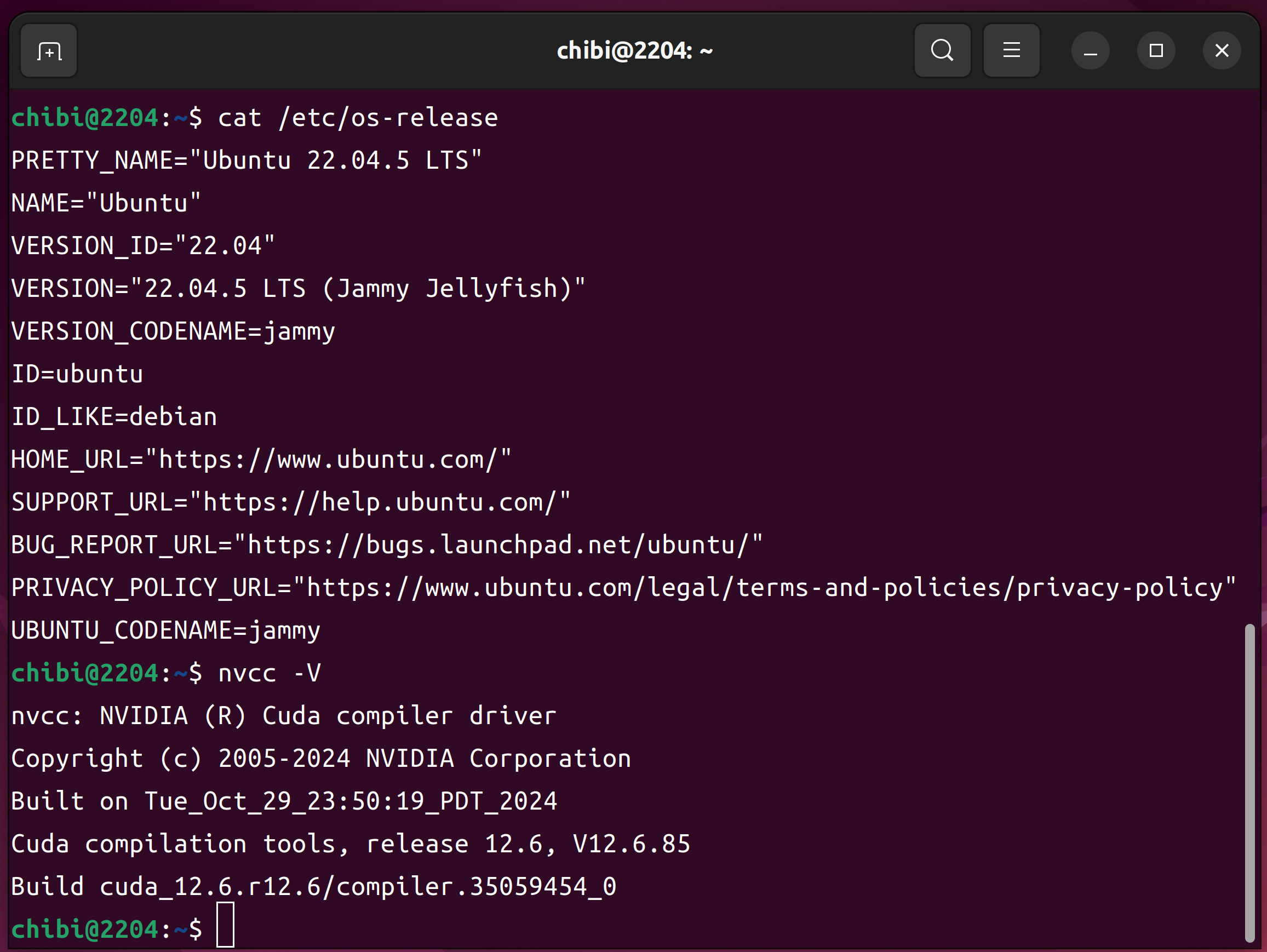 - 第5世代 AMD EPYC 9655 96-Core Processor 192Threads 384GB RTX2080Ti EDILOCA EN605 256GBで構成された Ubuntu22.04.5 LTSへ CUDA-toolkit 12.9.1をInstall してnvidia-smi nvcc -V cat /etc/os-release sensors nvme list nvme smart-log /dev/nvme0n1 lscpuを設定してみた