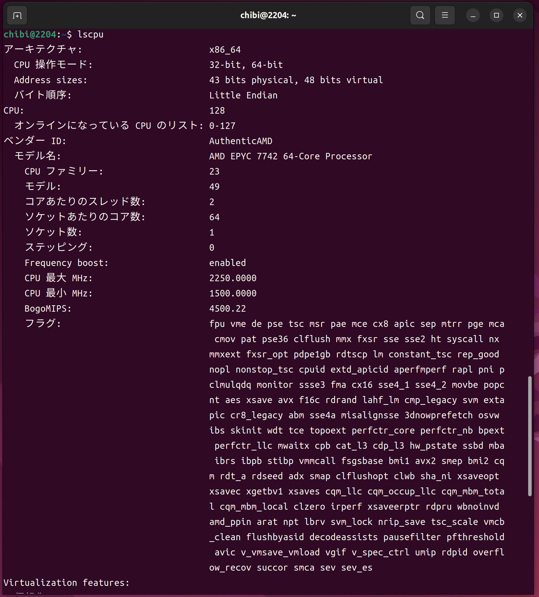 lscpu AMD EPYC 7742 64-Core Processor 128Thread