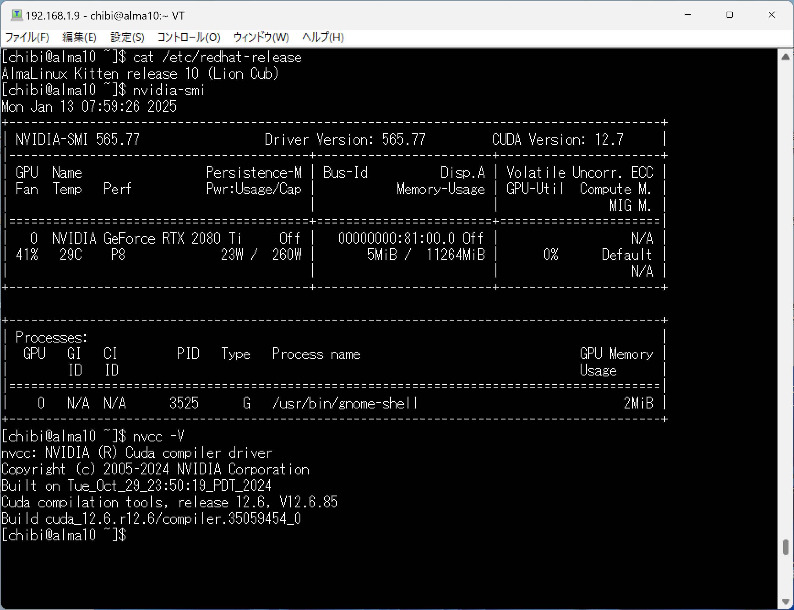 cat /etc/redhat-release nvidia-smi nvcc -V