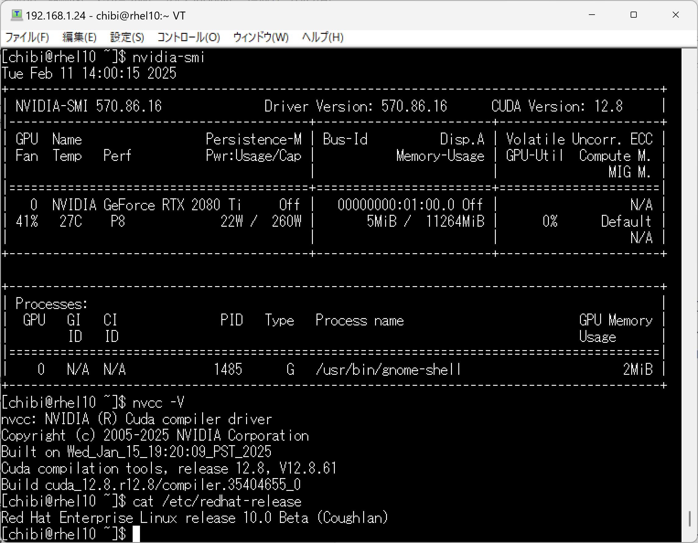 nvidia-smi nvcc -V cat /etc/redhat-release