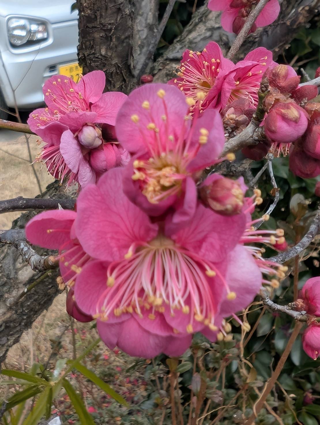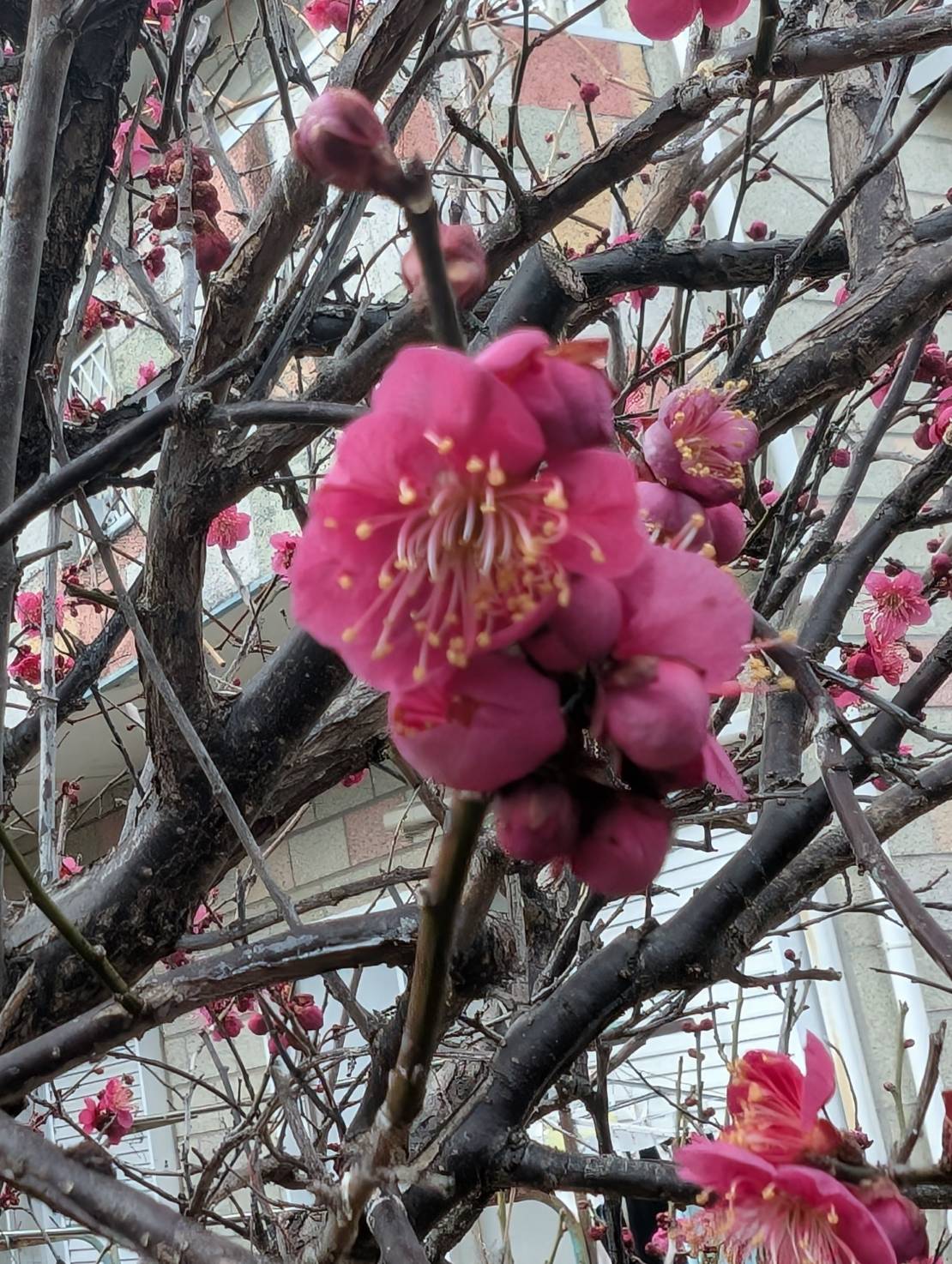 我が家には梅ありませんが、周りの家々でも紅梅がちらほら。日当たりがよく風があたらないところでは白梅も咲き始めていますね。我が家の春は蠟梅でしたが、今年は花が少なかった!昨年切りすぎです。次は辛夷です。ことしは蕾がいっぱい!!