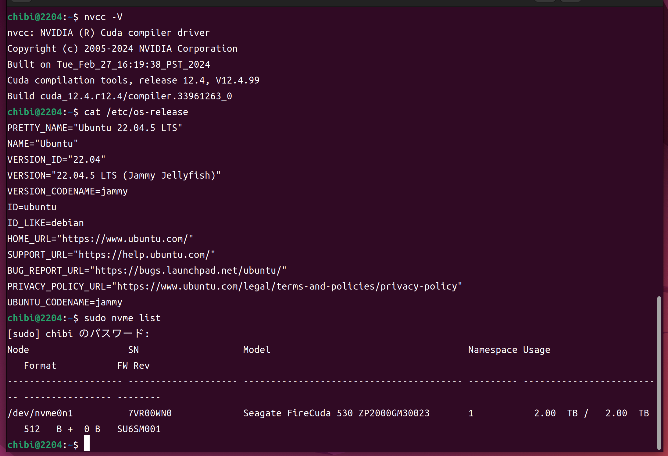 nvcc -V cat /etc/os-release nvme list