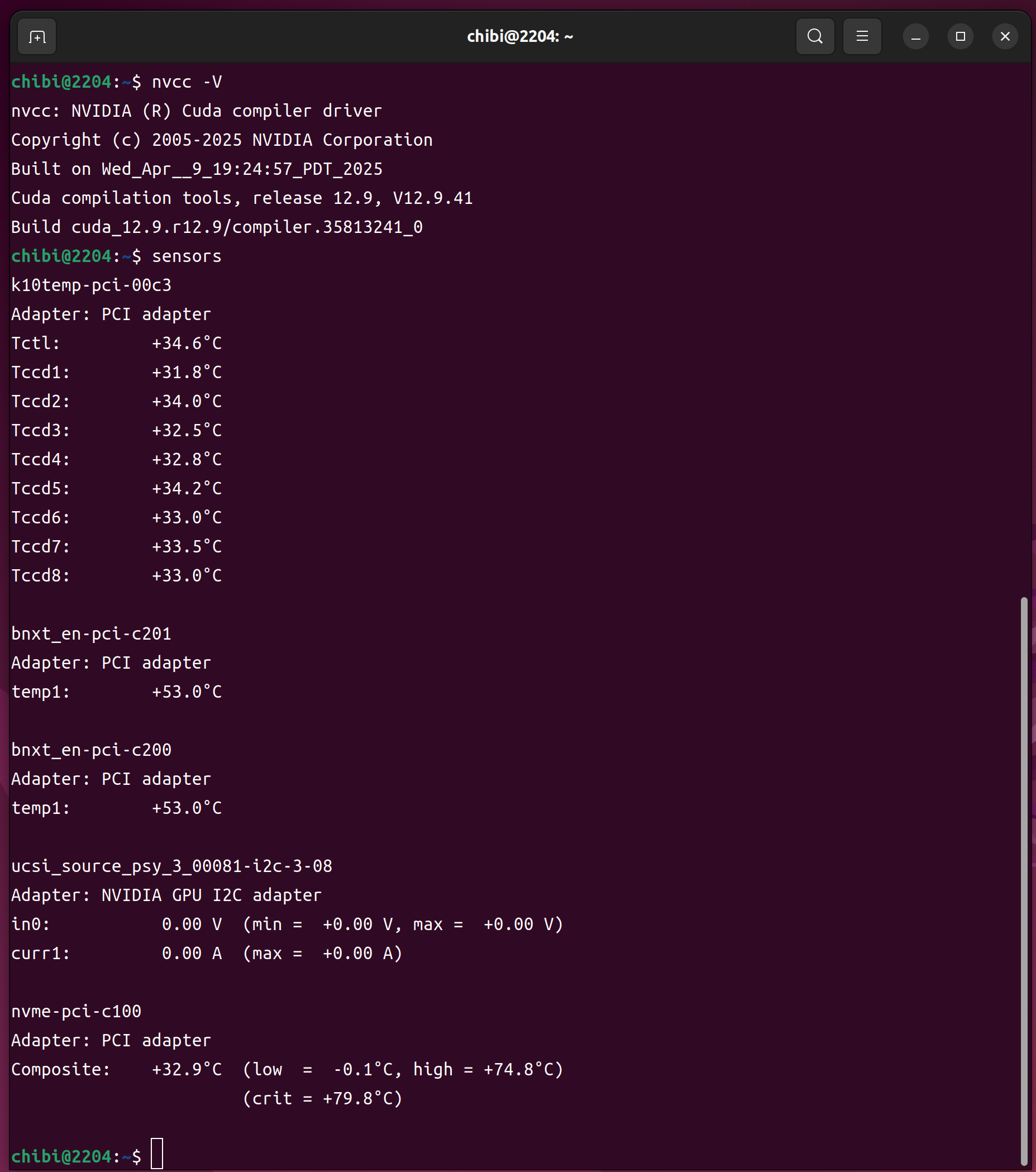 - 第3世代 AMD EPYC 7763 64-Core Processor 128Threads 256GB TITAN RTX ADATA SX8200PNP 128GB で構成された Ubuntu22.04.5 LTS へ CUDA.12.9.0をInstall して cat /etc/os-release nvidia-smi nvcc -V sensors nvme list nvme smart-log /dev/nvme0n1 lsmem lscpuを設定した