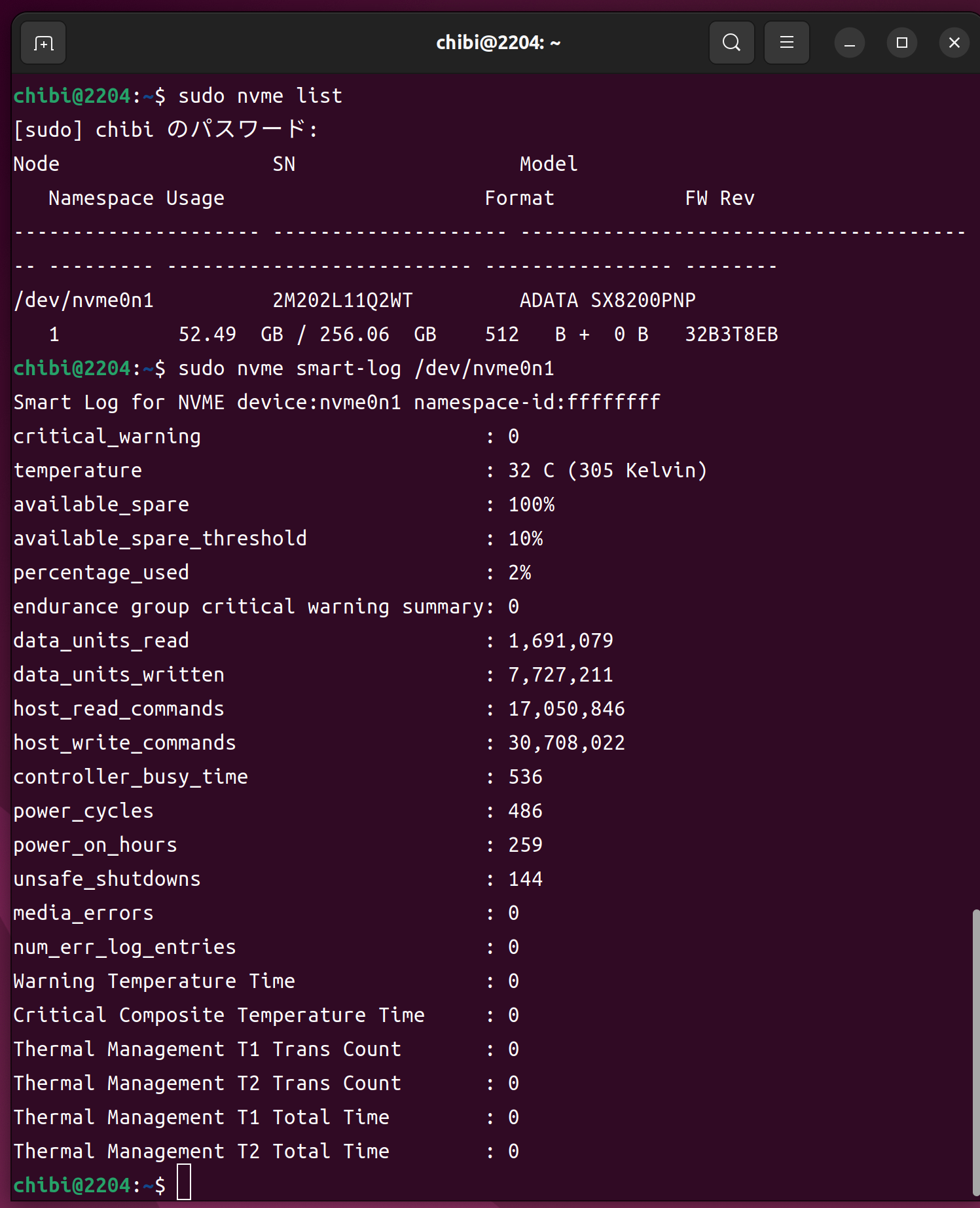 nvme list nvme smart-log /dev/nvme0n1