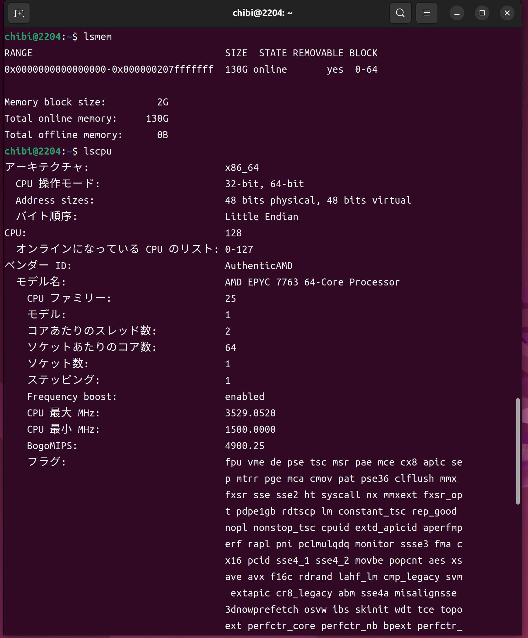 lsmem lscpu AMD EPYC 7763 64-Core Processor 128Threads