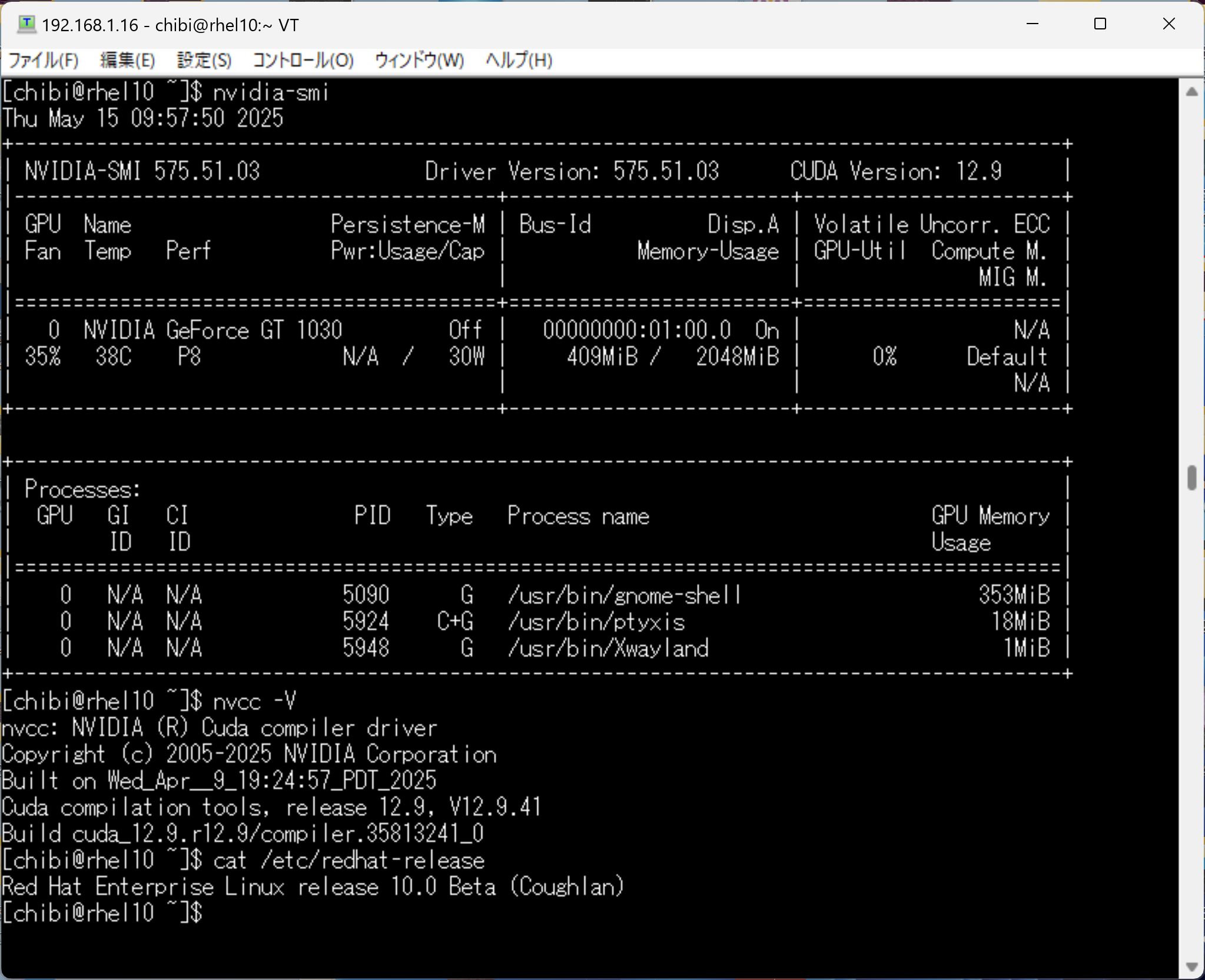 nvidia-smi nvcc -V cat /etc/redhat-release