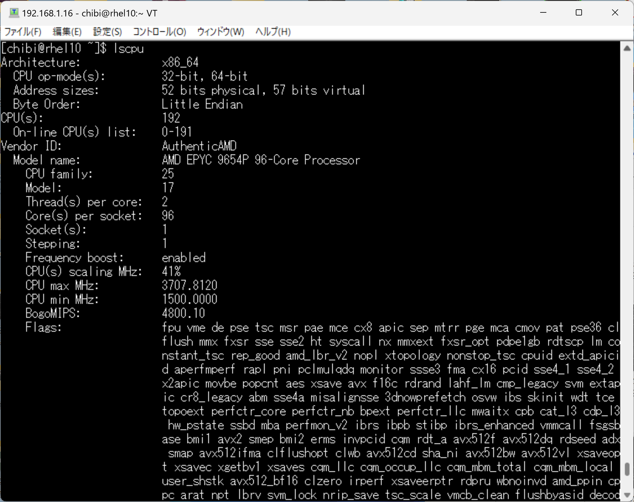 lscpu AMD EPYC 9654P 96-Core Processor 192Threads