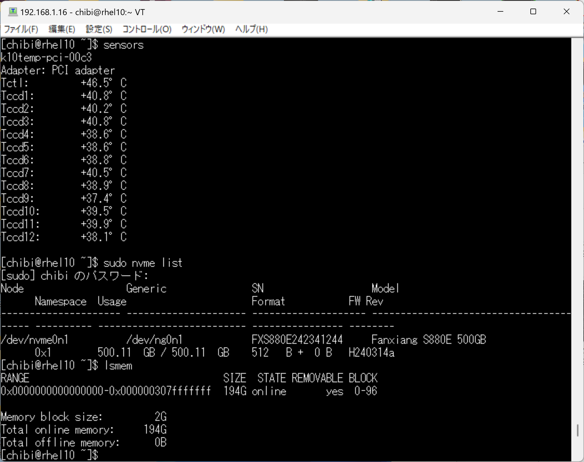 - 第5世代 AMD EPYC 9655 96-Core Processor 192Thereds 384GB TAITAN RTX Fanxiang S880E 500GB 構成された Red Hat Enterprise Linux release 10.0へ CUDA.12.9.0をInstall して cat /etc/redhat-release nvidia-smi nvcc -V lsmem sensors nvme list smart-log /dev/nvme0n1 lscpuを設定してみた に 中川隆 より