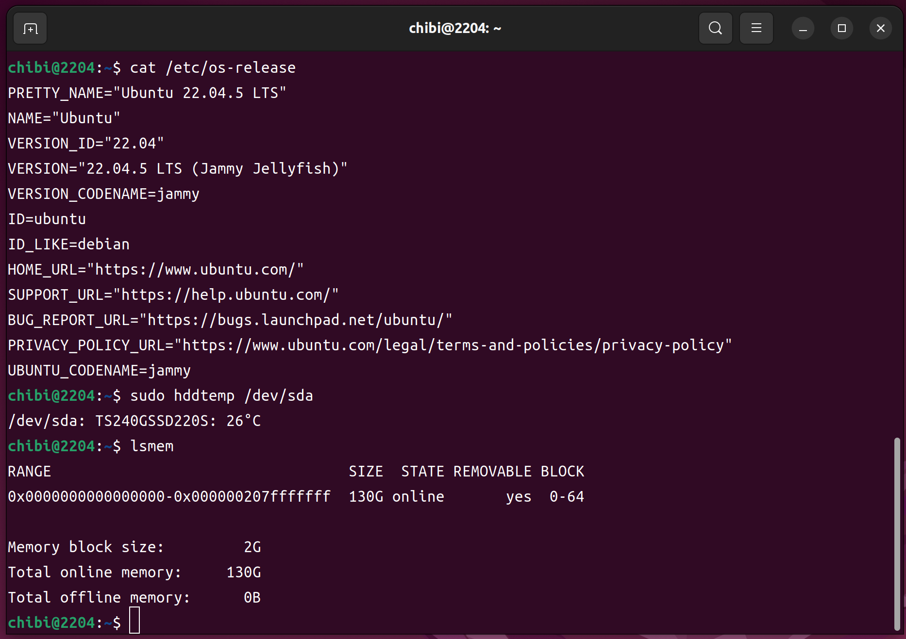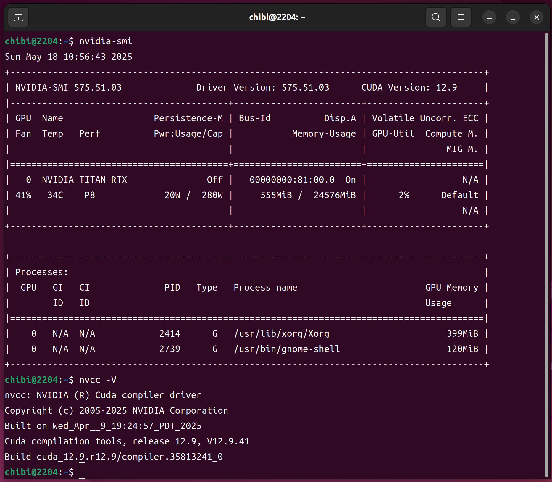 - 第3世代 AMD EPYC 7763 64-Core Processor 128Threads 128GB TITAN RTX TS256GSSD370S 256GBで構成された Ubuntu 22.04.5 LTS へ CUDA-toolkit 12.9.0をInstall してnvidia-smi nvcc -V cat /etc/os-release sensors hddtemp lsmem lscpuを設定してみた