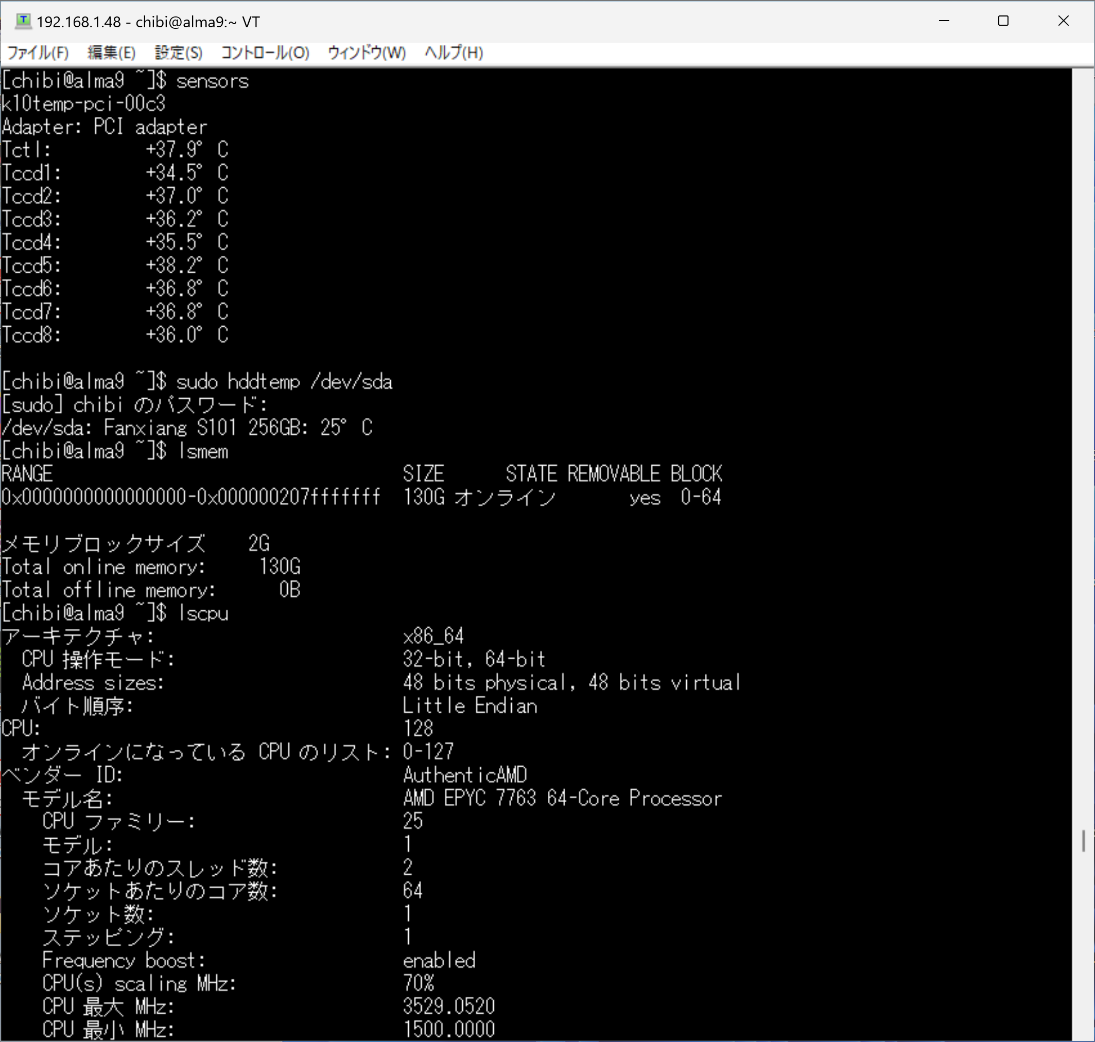 sensors hddtemp lsmem 128GB lscpu AMD EPYC 7763 64-Core Processor 128Threads