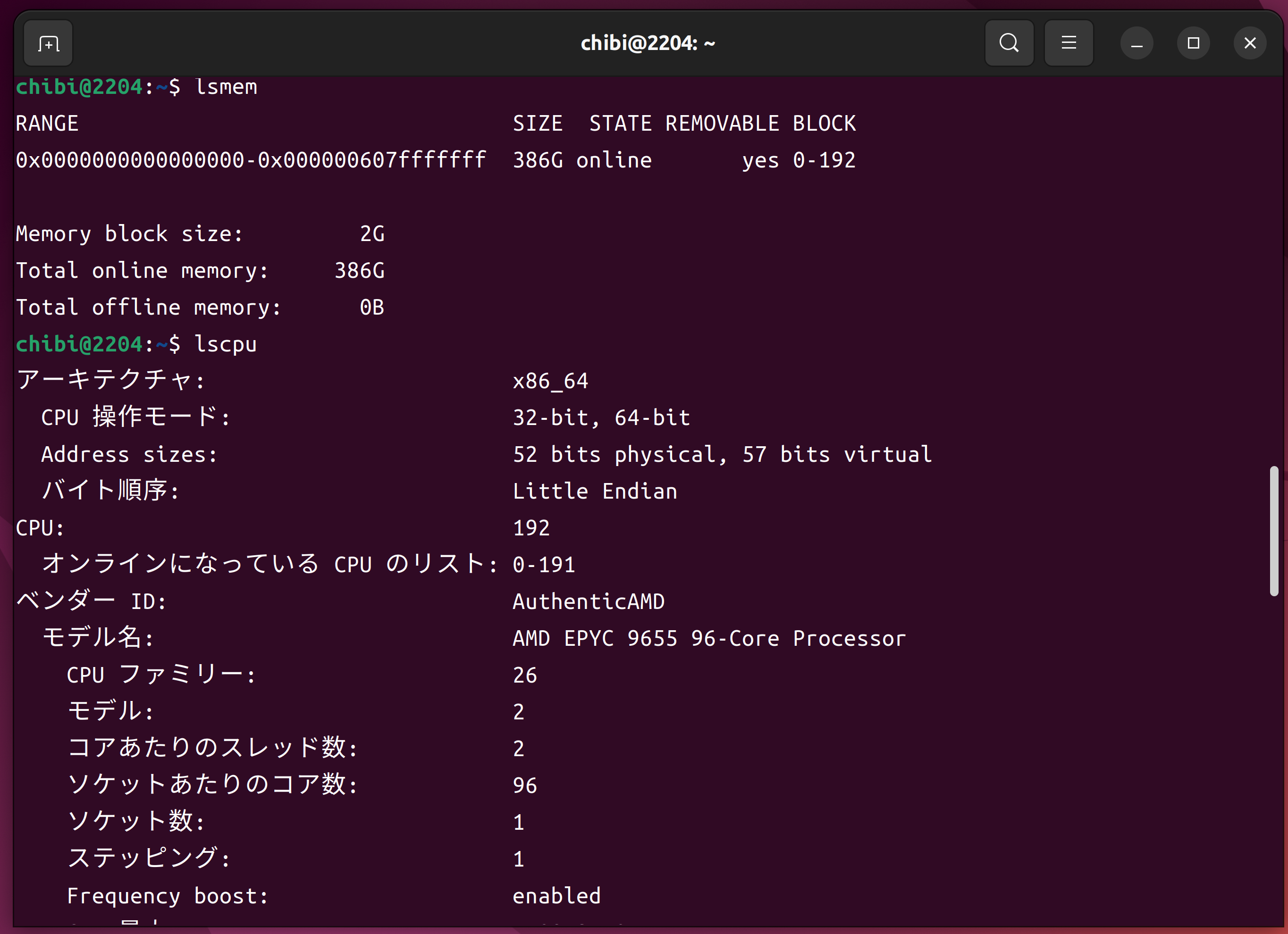 lsmem lscpu AMD EPYC 9655 96-Core Processor 192Threads