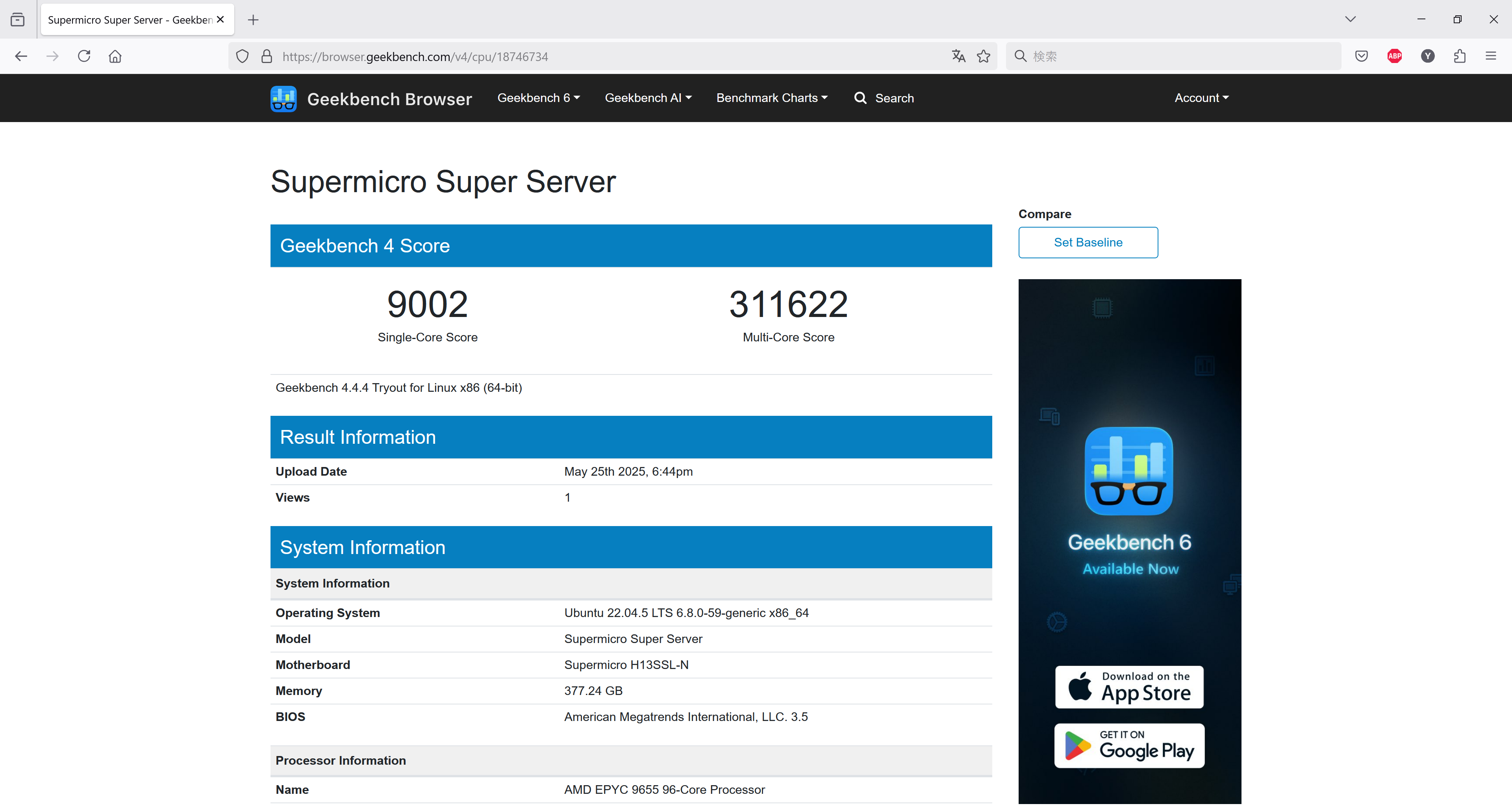 第5世代 AMD EPYC 9655 96-Core Processor Single-Core Score 9002
