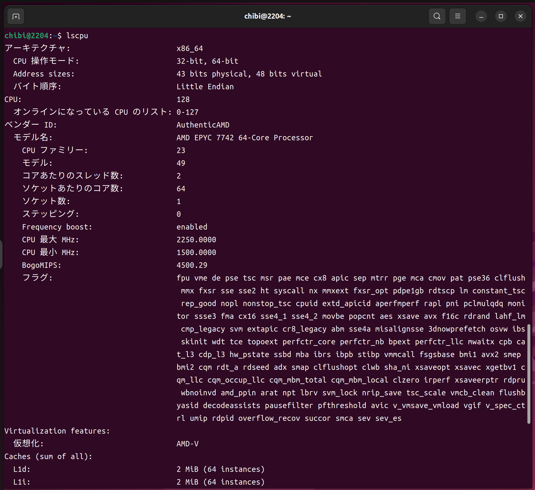 lscpu AMD EPYC 7742 64-Core Processor 128Threads
