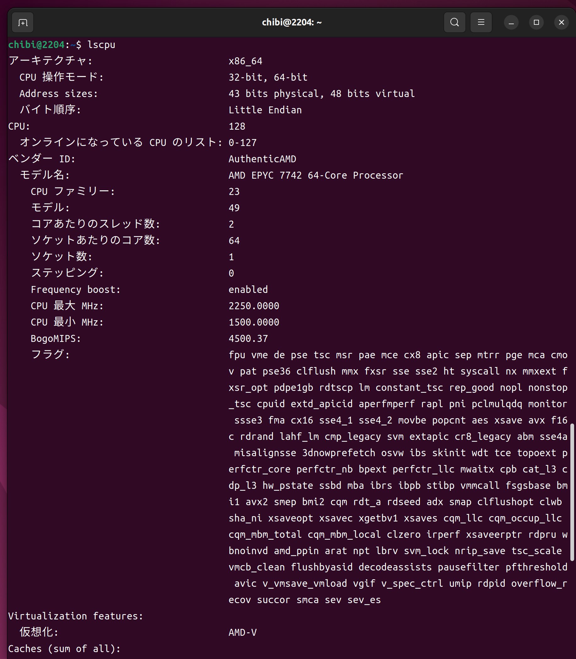 lscpu AMD EPYC 7742 64-Core Processor 128Threads