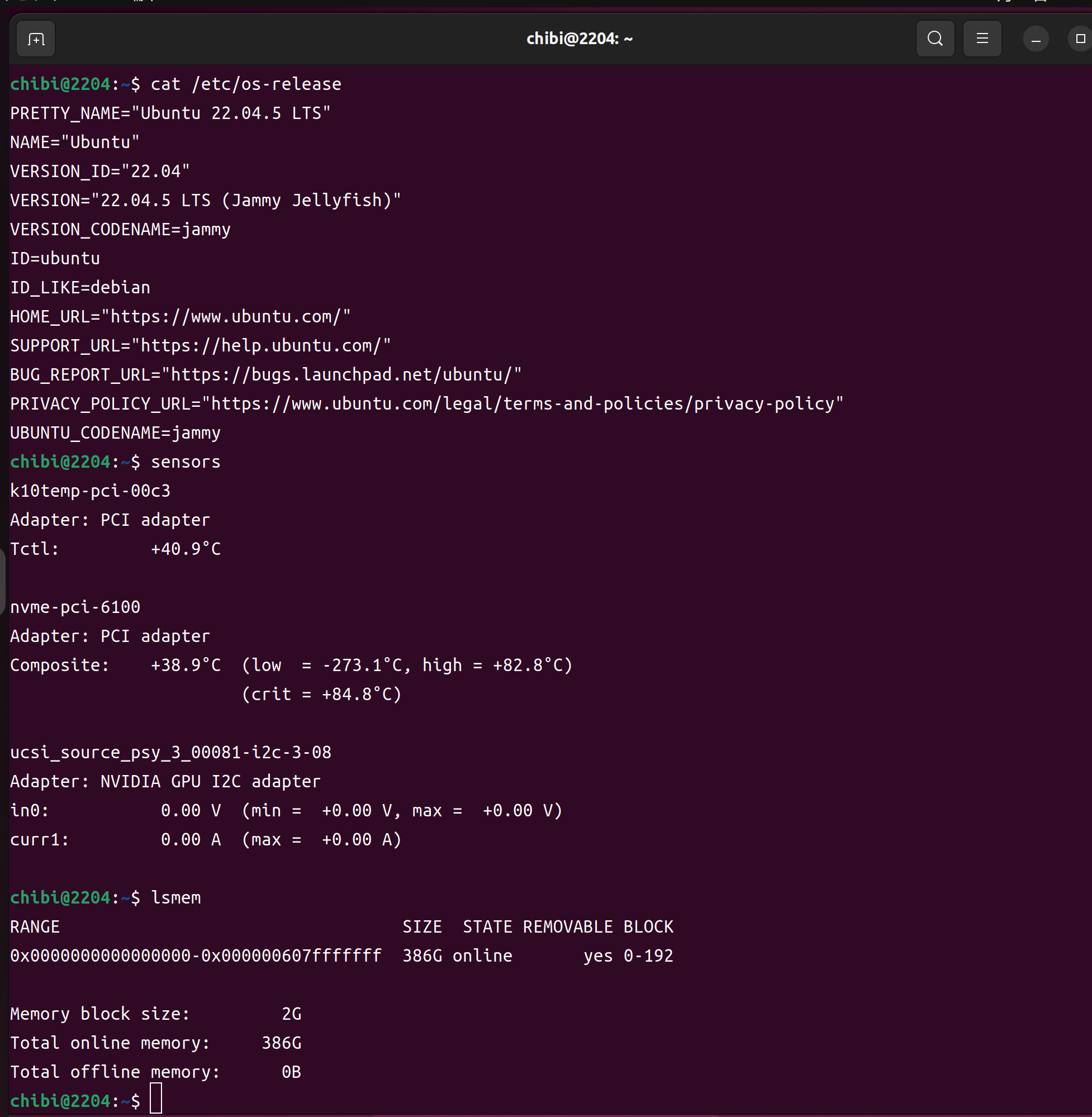 cat /etc/os-release sensors lsmem 384GB