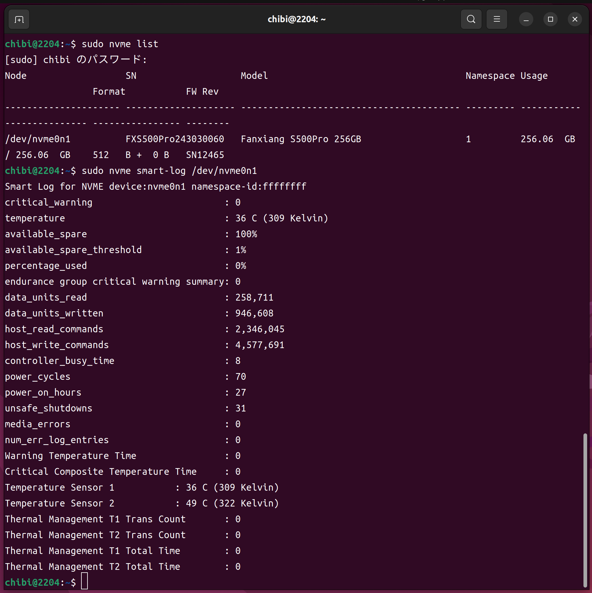 - 第4世代 AMD EPYC 9654P 96-Core Processor 192Threads 384GB GT1030 Fanxiang S500Pro 256GB で構成された Ubuntu 22.04.5 LTS へ CUDA-toolkit 12.6.3をInstall して nvidia-smi nvcc -V cat /etc/os-release sensors nvme list nvme-smart-log /dev/nvme0n1 lsmem lscpuを設定してみた