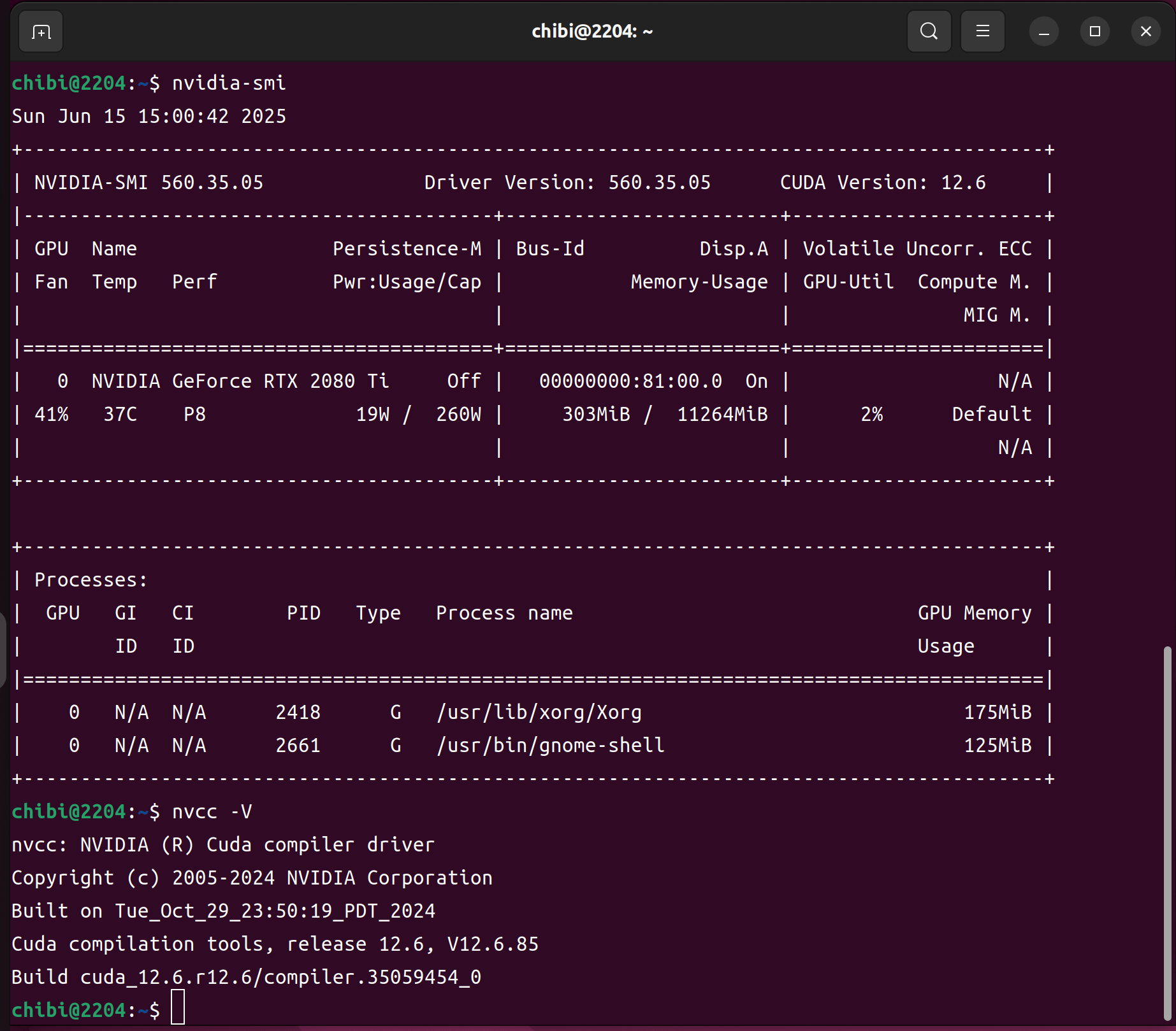 - 第2世代 AMD EPYC 7742 64-Core Processor 128Threads 256GB RTX2080Ti EDILOCA EN605 256GBで構成された Ubuntu 22.04.5 LTS へ CUDA-toolkit 12.9.1をInstall してnvidia-smi nvcc -V cat /etc/os-release sensors lsmem nvme list nvme smart-log /dev/nvme0n1 lscpuを設定してみた