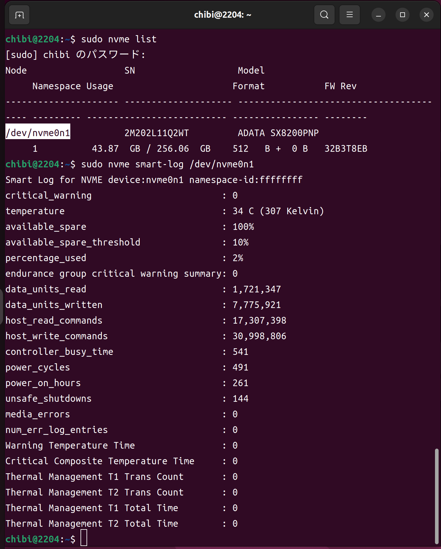 - 第2世代 AMD EPYC 7742 64-Core Processor 128Threads 256GB RTX2080Ti ADATA SX8200PNP 256GBで構成された Ubuntu 22.04.5 LTS へ CUDA-toolkit 12.6.3をInstall してnvidia-smi nvcc -V cat /etc/os-release sensors nvme list nvme smart-log /dev/nvme0n1 lsmem lscpuを設定してみた