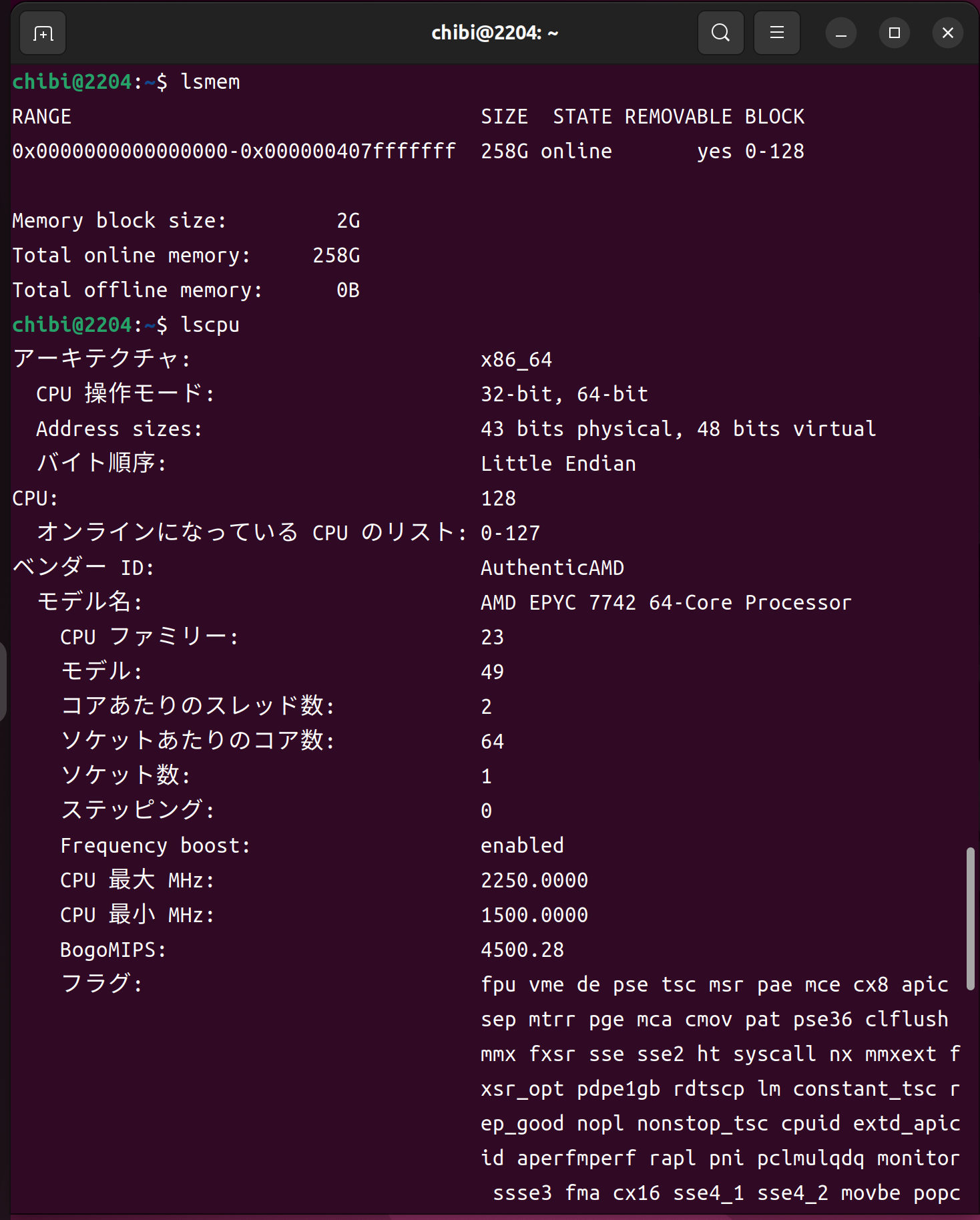 lsmem 256GB lscpu AMD EPYC 7742 64-Core Processor 128Threads
