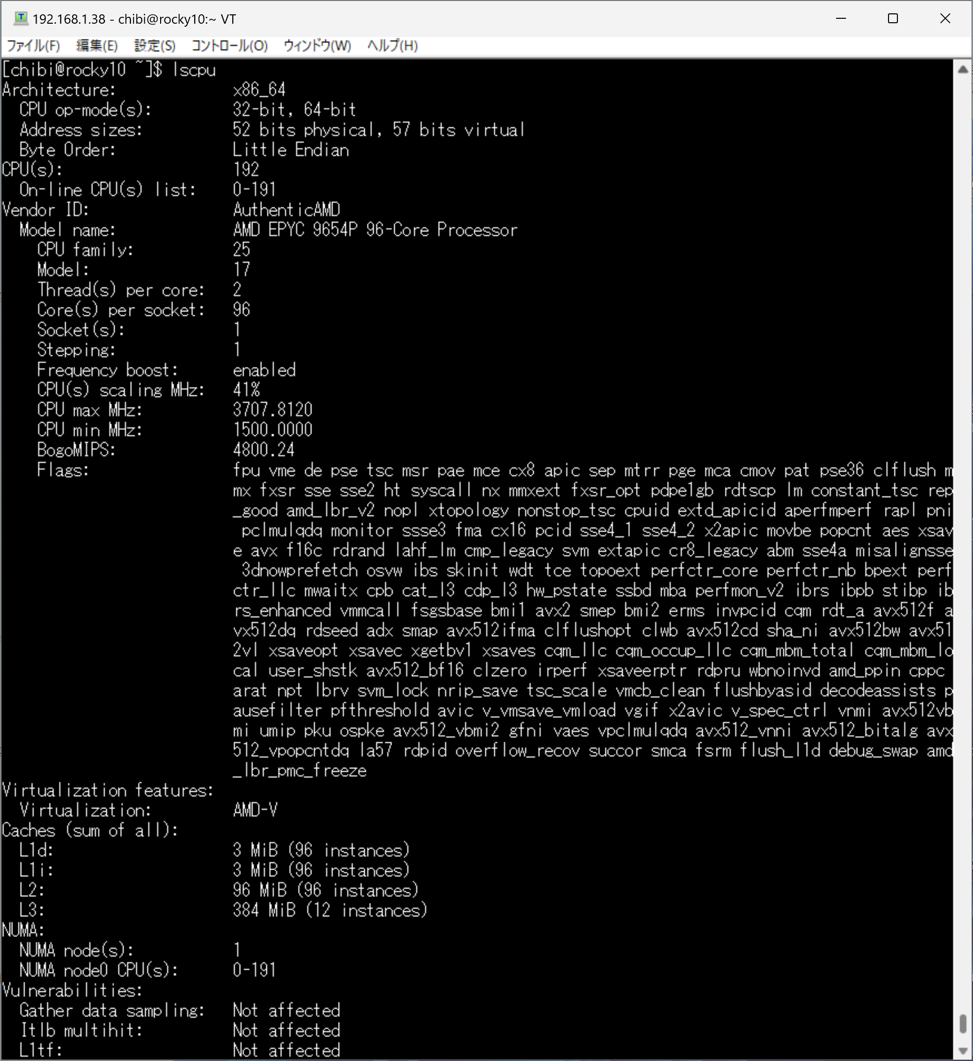 lscpu AMD EPYC 9654P 96-Core Processor 192Threads
