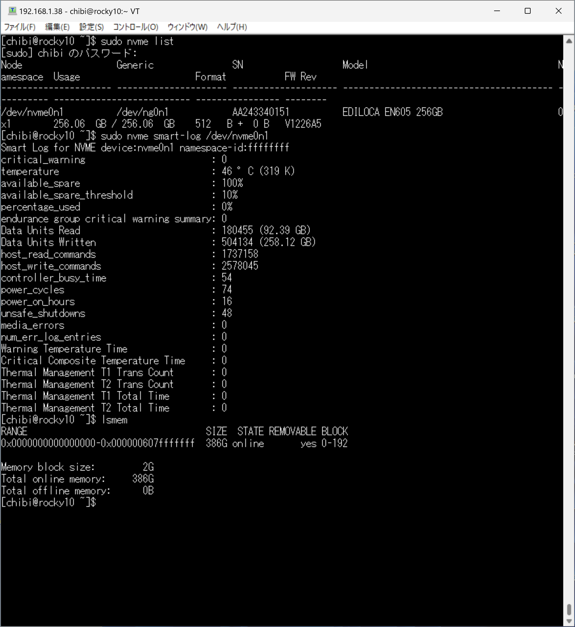 nvme list nvme-smart-log /dev/nvme0n1 lsmem 384GB