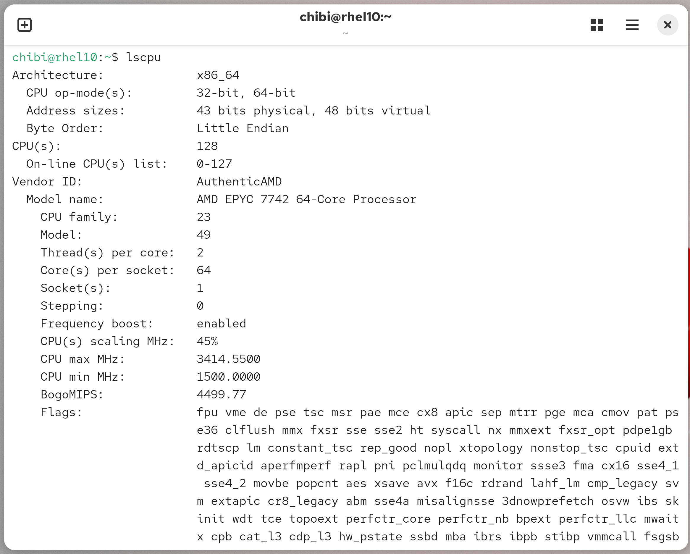 lscpu AMD EPYC 7742 64-Core Processor 128Threads