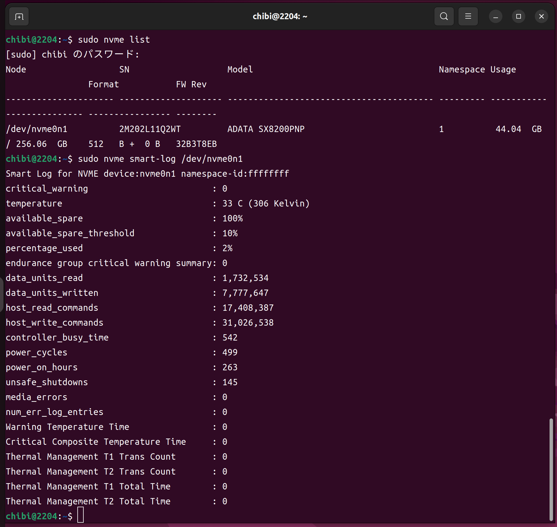 - 第2世代 AMD EPYC 7742 64-Core Processor 128Threads 256GB RTX2080Ti ADATA SX8200PNP 256GBで構成された Ubuntu 22.04.5 LTS へ CUDA-toolkit 12.6.3をInstall してnvidia-smi nvcc -V cat /etc/os-release sensors nvme list nvme smart-log /dev/nvme0n1 lsmem lscpuを設定してみた