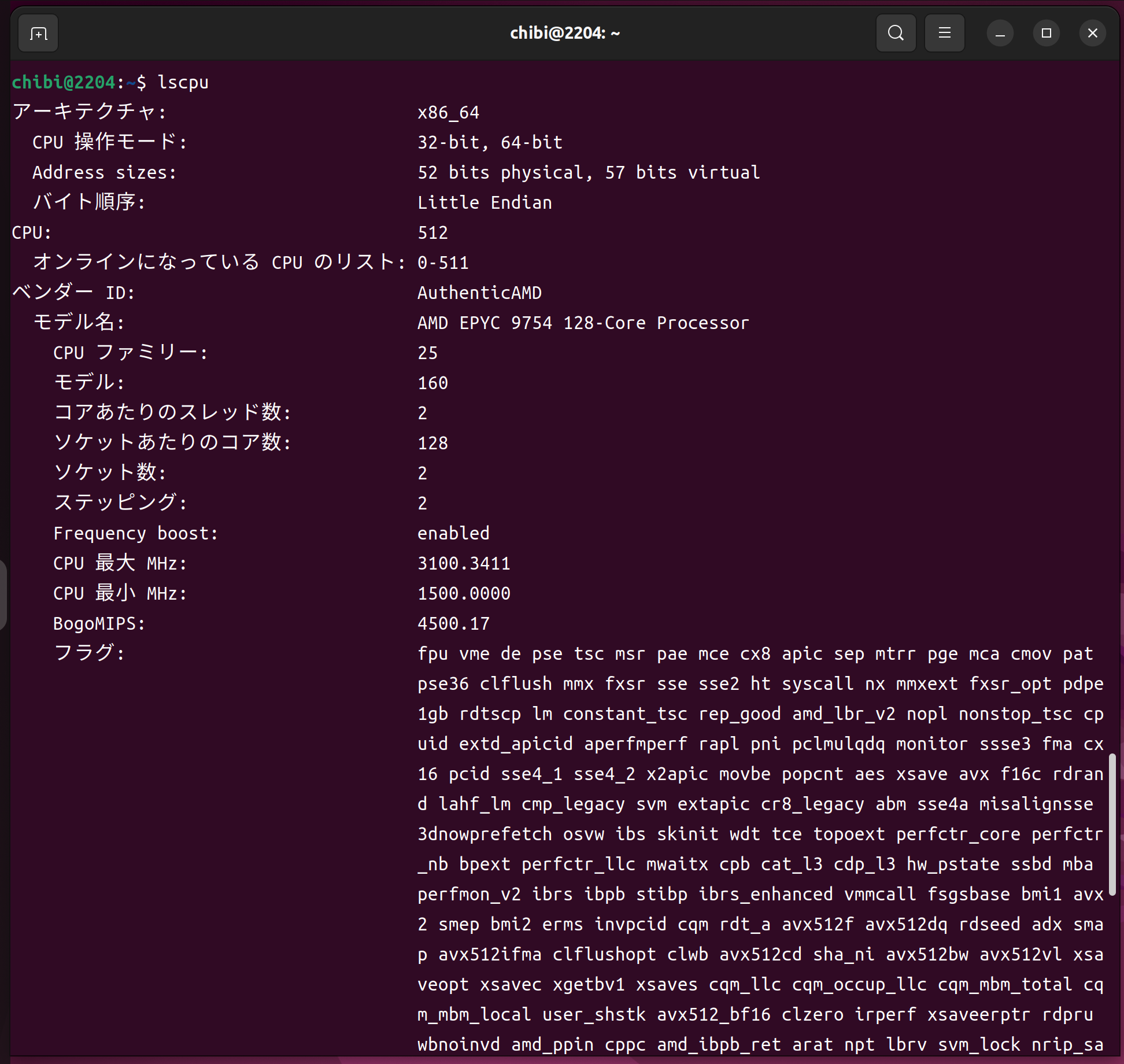 lscpu AMD EPYC 9754 X2 CPU 256-Core Processor 512Threads
