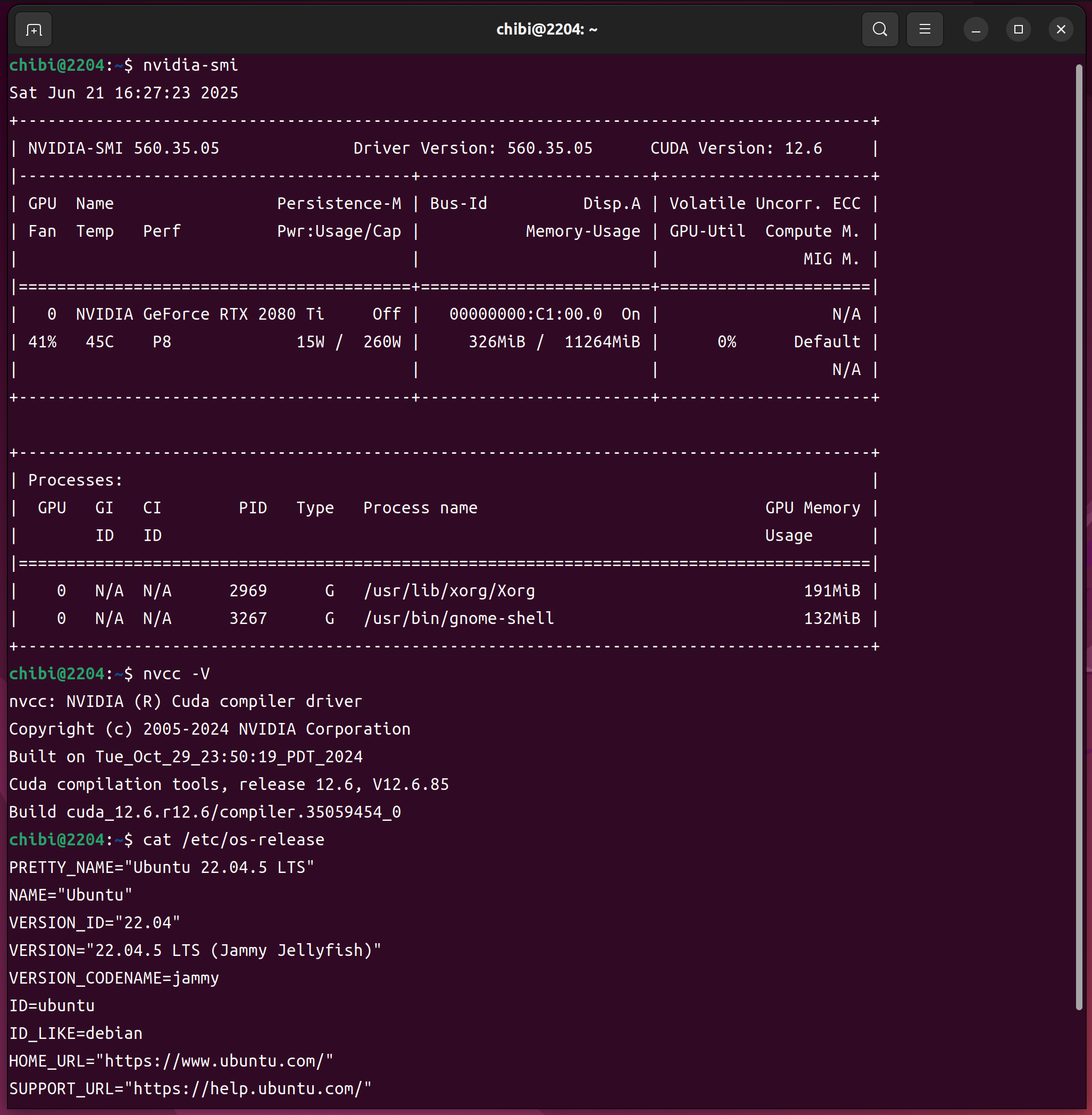 nvidia-smi nvcc -V cat /etc/os-release