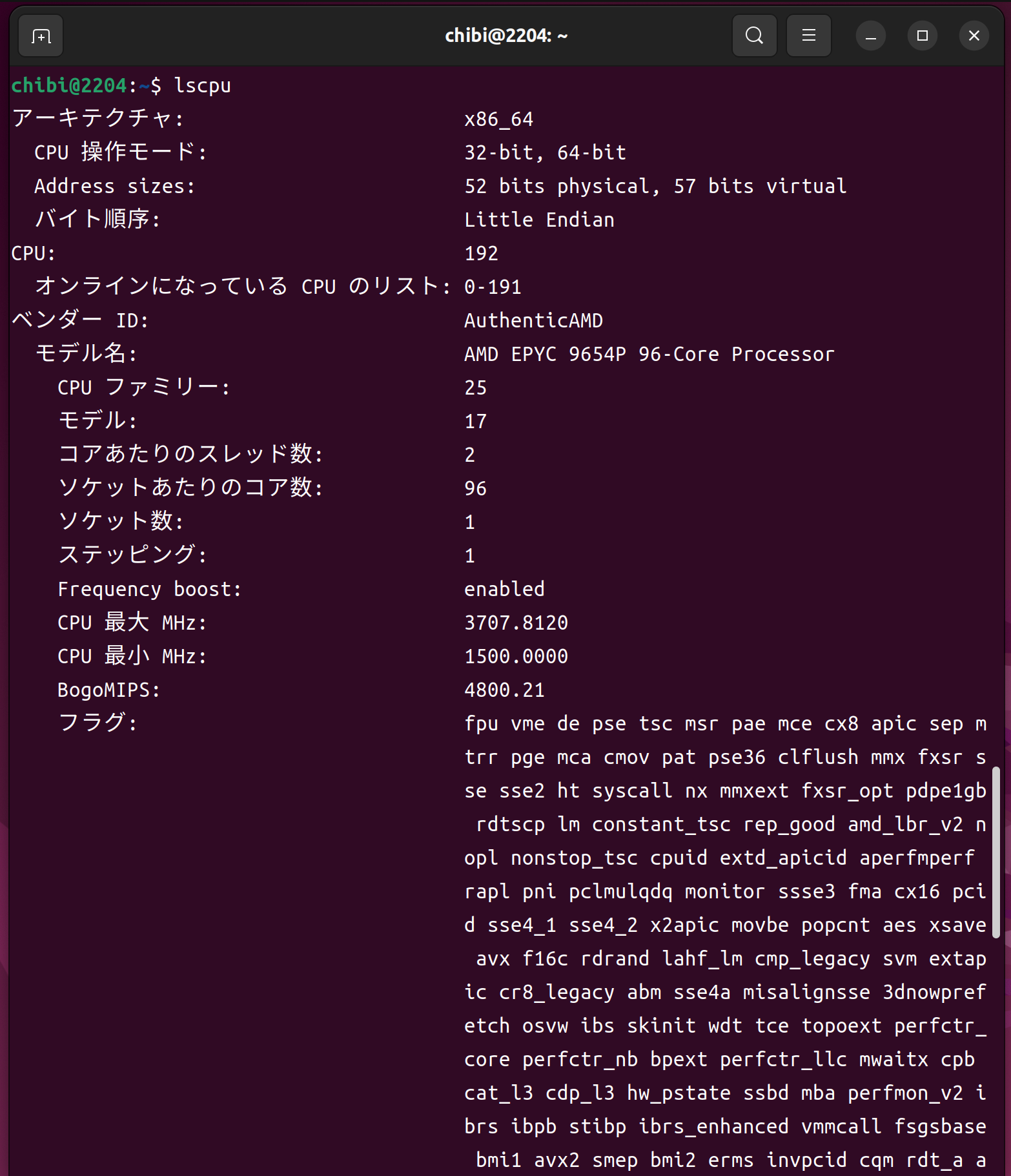lscpu AMD EPYC 96-Core Processor 192Threads