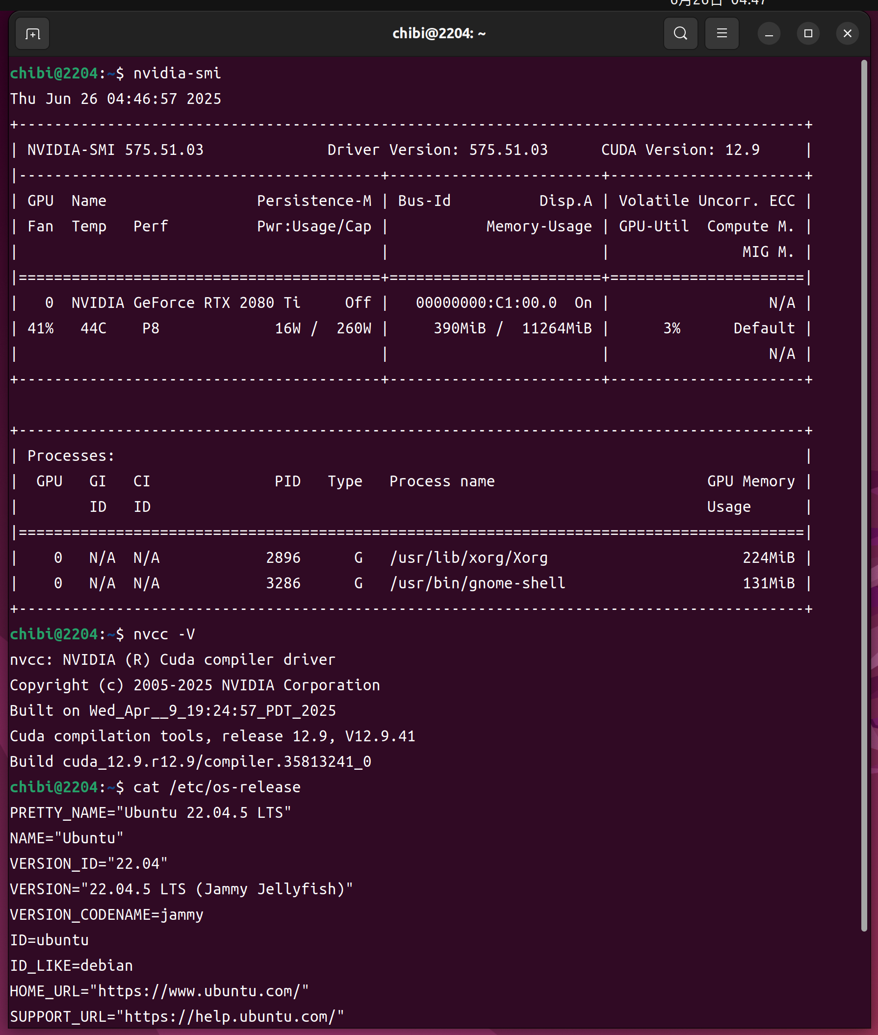 nvidia-smi nvcc -V cat /etc/os-release