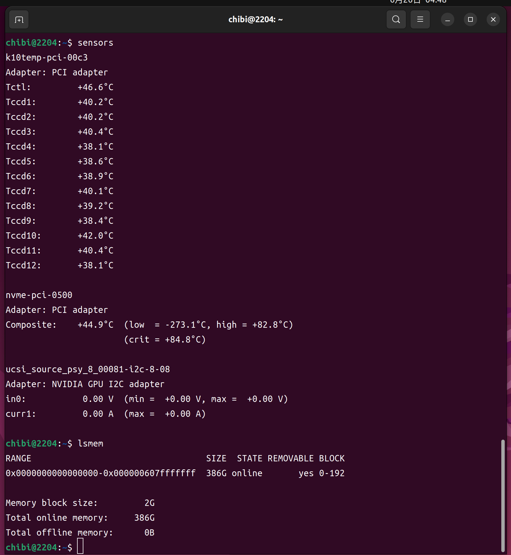 - 第2世代 AMD EPYC 7742 64-Core Processor 128Threads 256GB RTX2080Ti ADATA SX8200PNP 256GBで構成された Ubuntu 22.04.5 LTS へ CUDA-toolkit 12.6.3をInstall してnvidia-smi nvcc -V cat /etc/os-release sensors nvme list nvme smart-log /dev/nvme0n1 lsmem lscpuを設定してみた