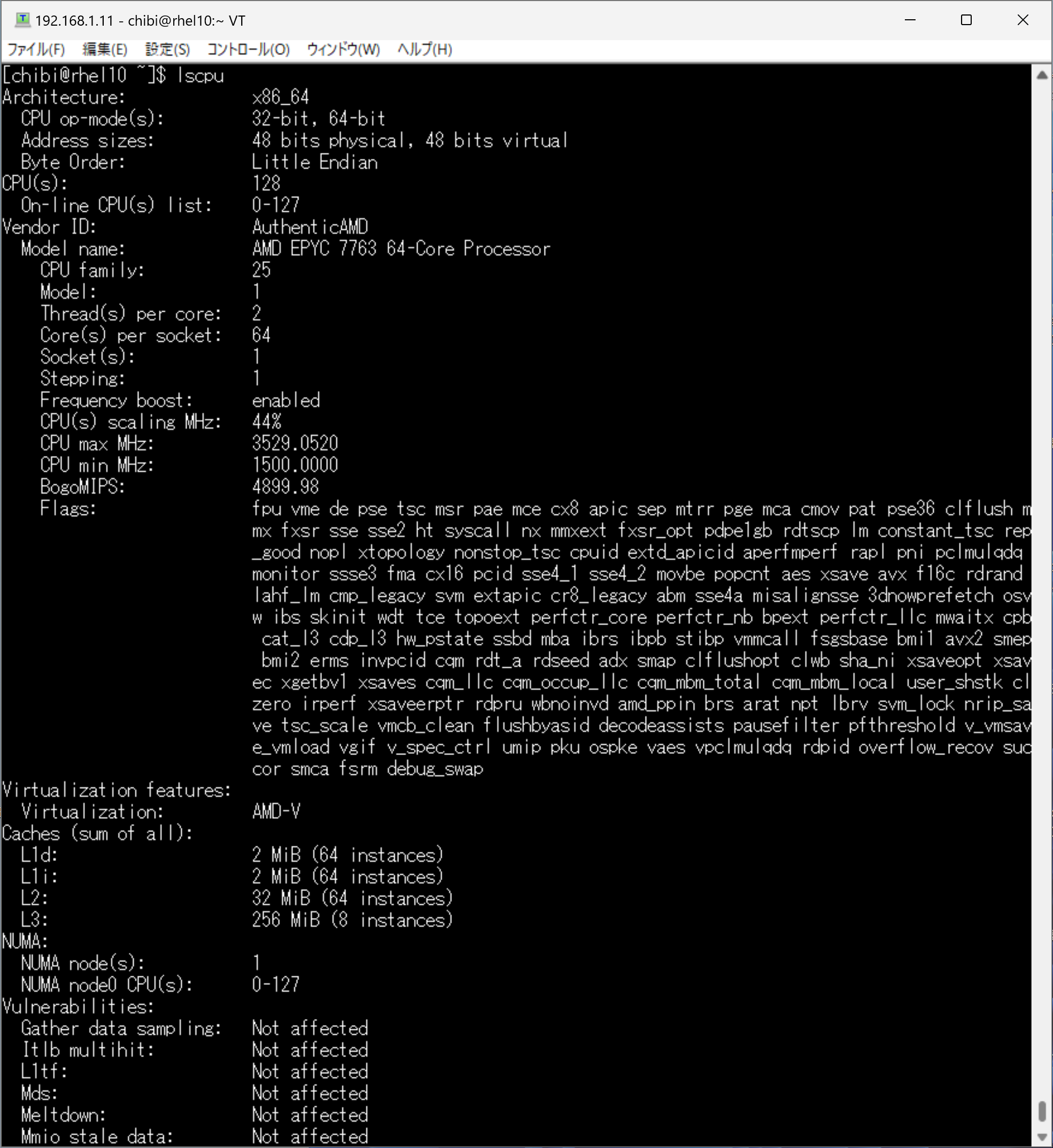 lscpu AMD EPYC 7763 64-Core Processor 128Threads