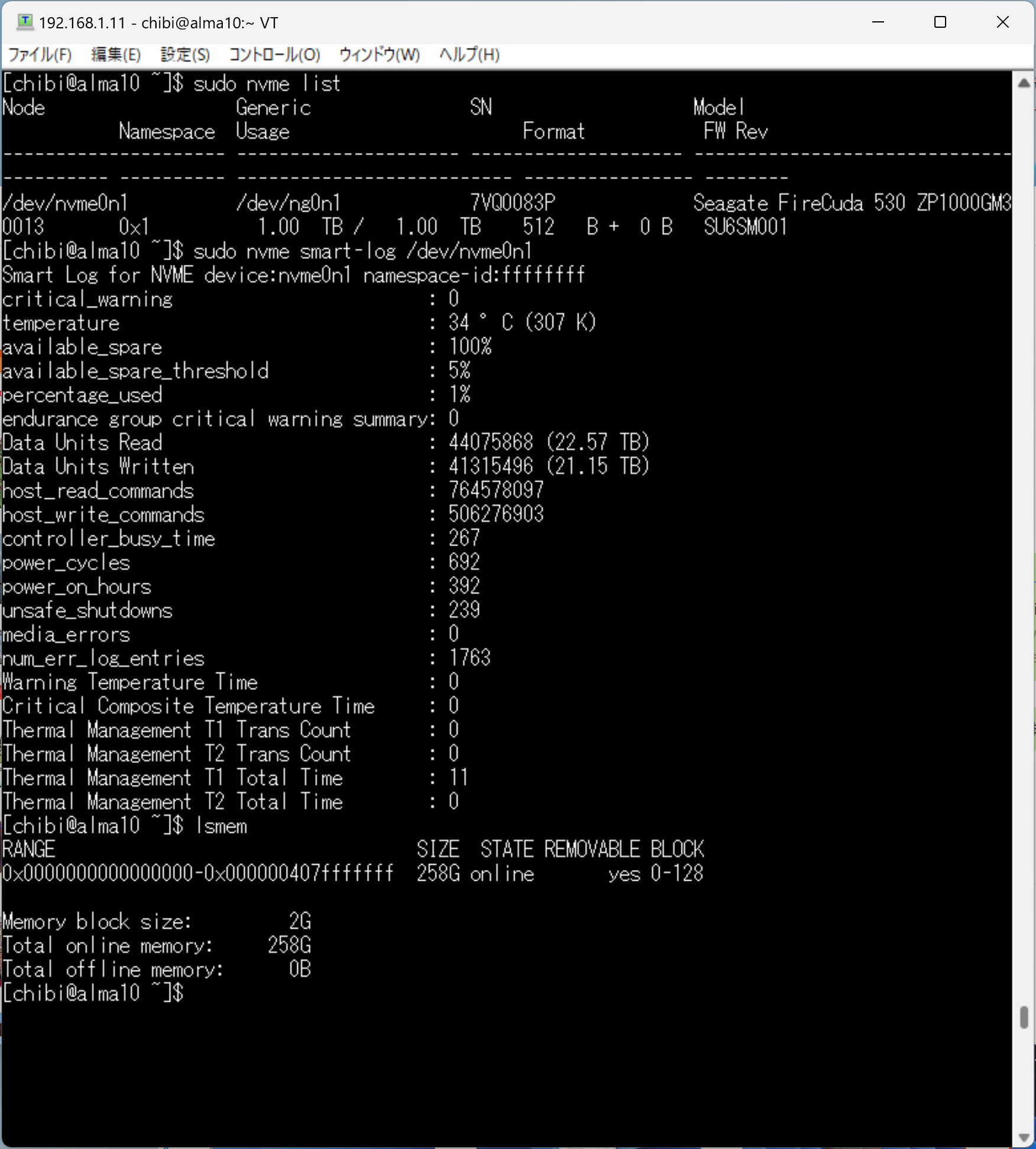 nvme list nvme smart-log /dev/nvme0n1 lsmem 256GB