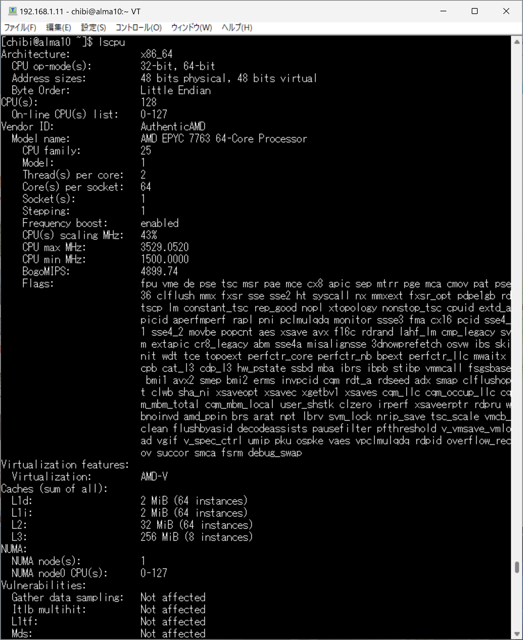 lscpu AMD EPYC 7763 64-Core Processor 128Threads
