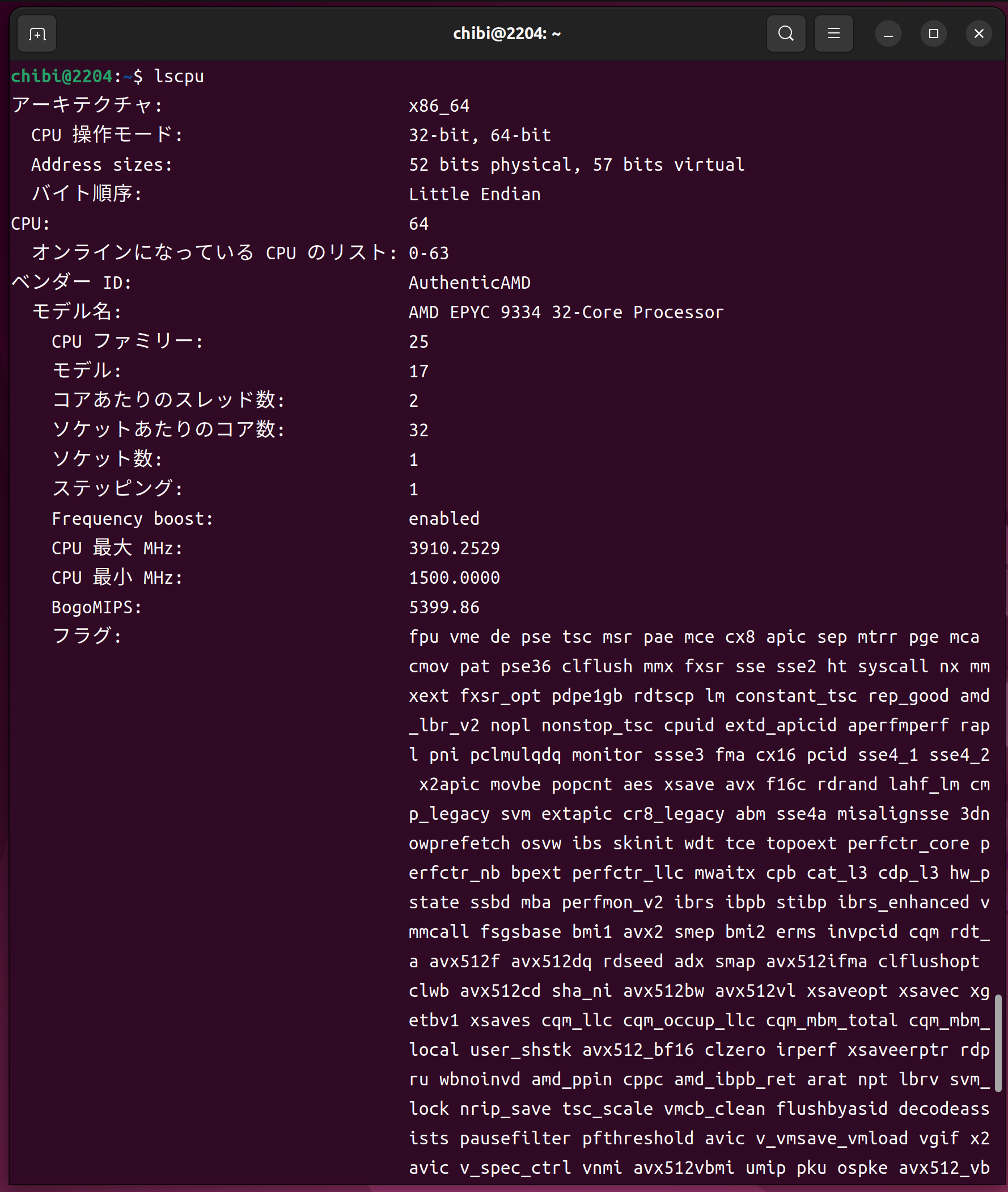 lscpu AMD EPYC 9334 32-Core Processor 64Threads