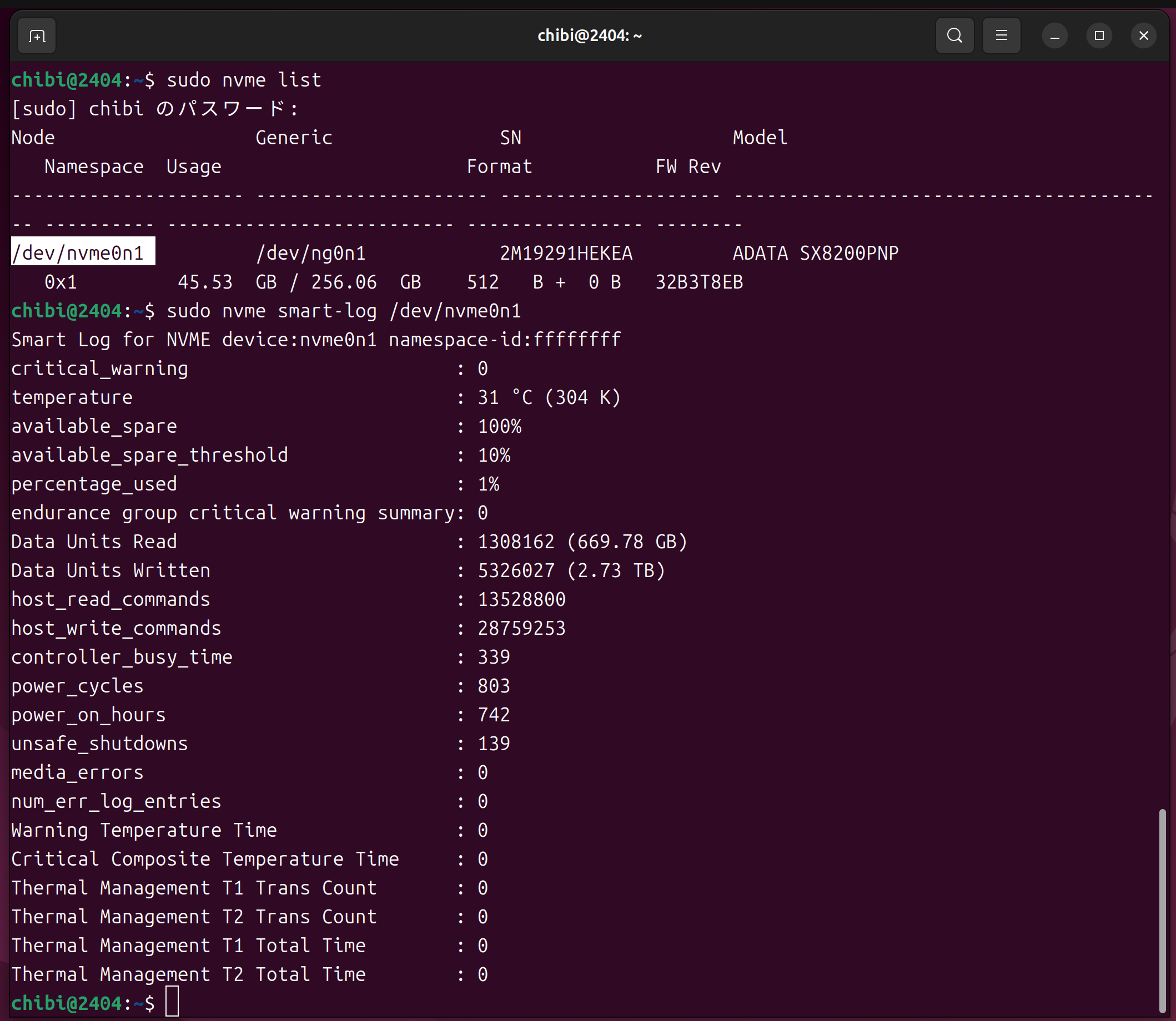 - Intel(R) Core(TM) i7-6700K CPU @ 4.00GHz 4core 8threds 32GB RTX2080Ti PLEXTOR PX-256M9PeGで構成されたUbuntu24.04.3 LTS へ CUDA-toolkit 12.5をInstall してnvidia-smi nvcc -V cat /etc/os-release sensors lsmem nvme list nvme smart-log /dev/nmve0n1 lscpuを設定 に 丸山泰男 より